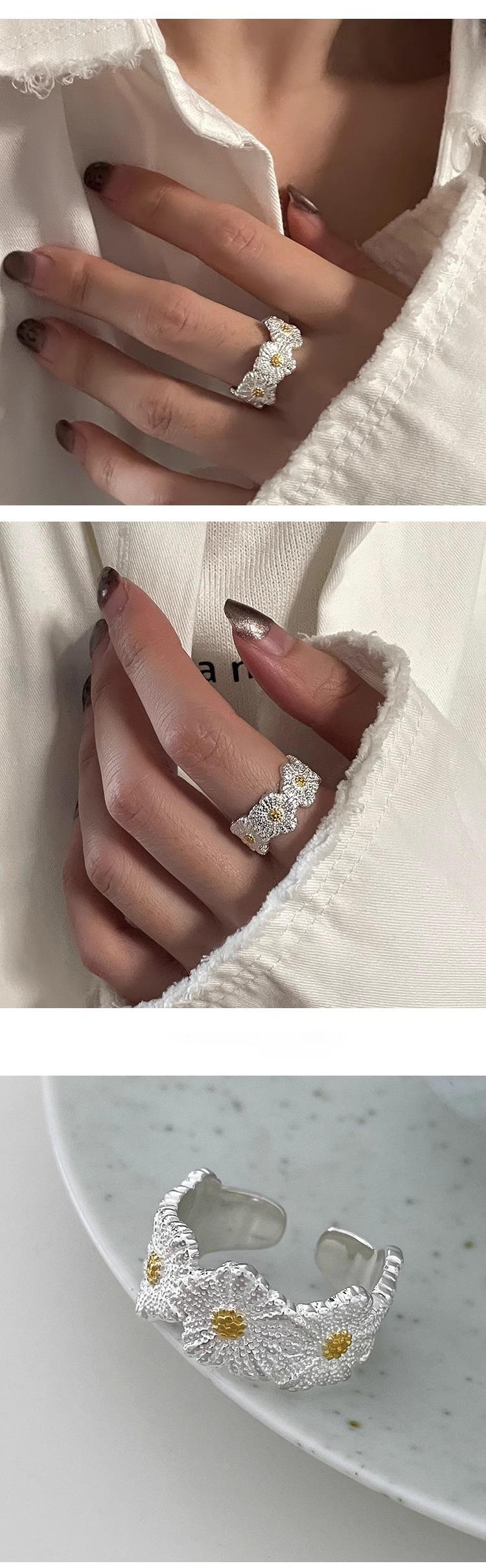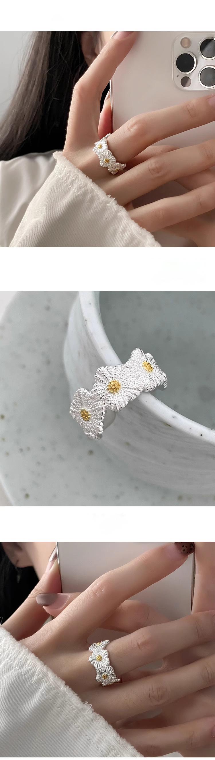 Anillo de margarita pequeña de diseño nicho para mujer, nicho de alta gama, simple, pétalos, retro, lujo ligero, apertura ajustable, venta al por mayor