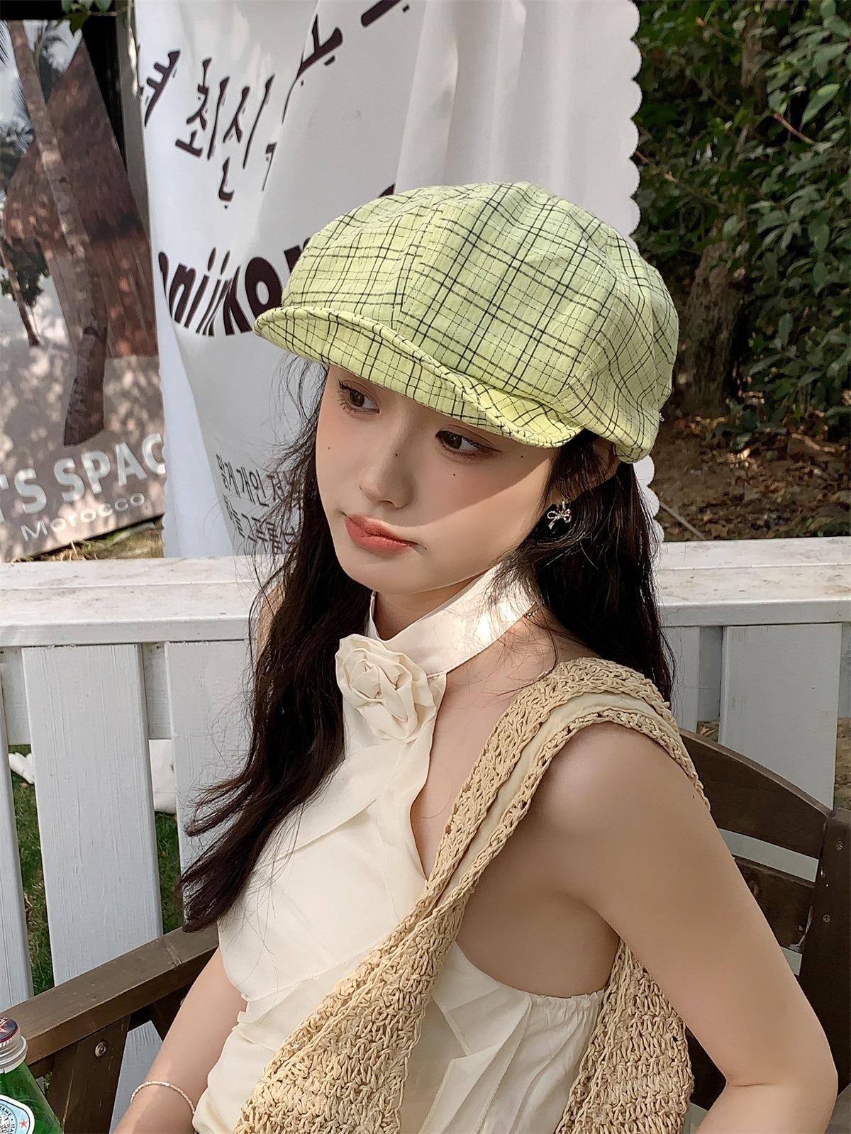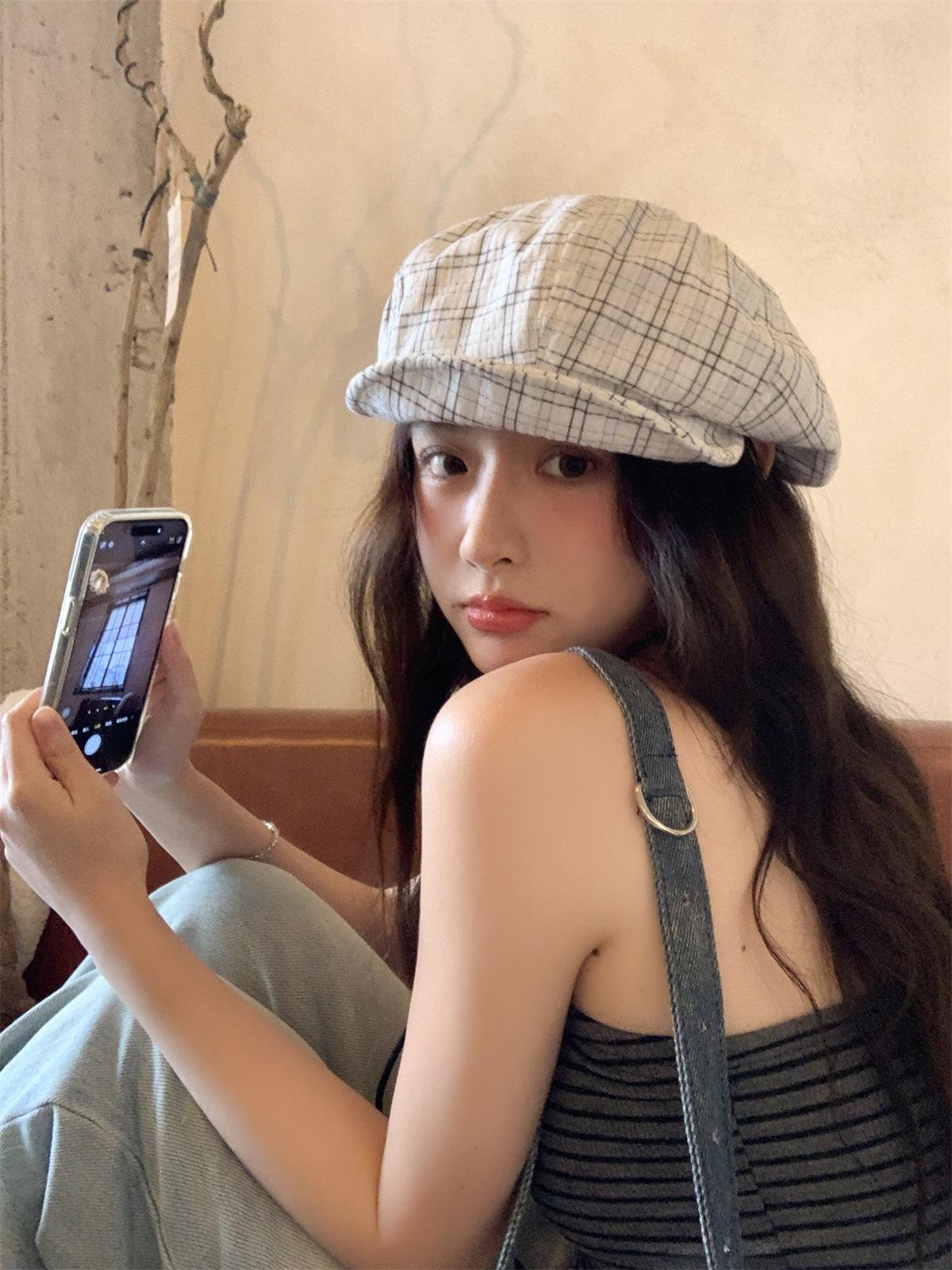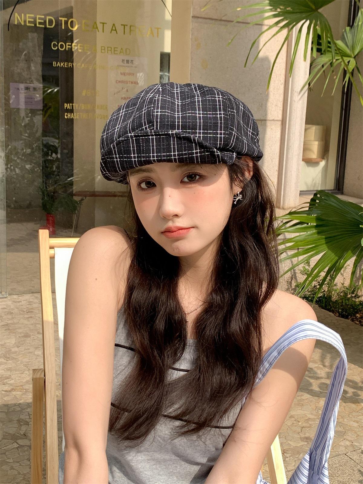 Boina a cuadros artística retro japonesa para niños, moda de primavera y verano, casual, combinable con todo, de pintor, octogonal, gorro nube, moderna