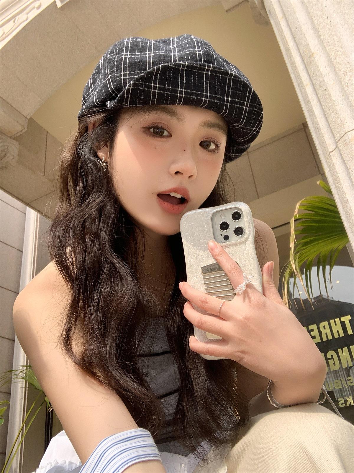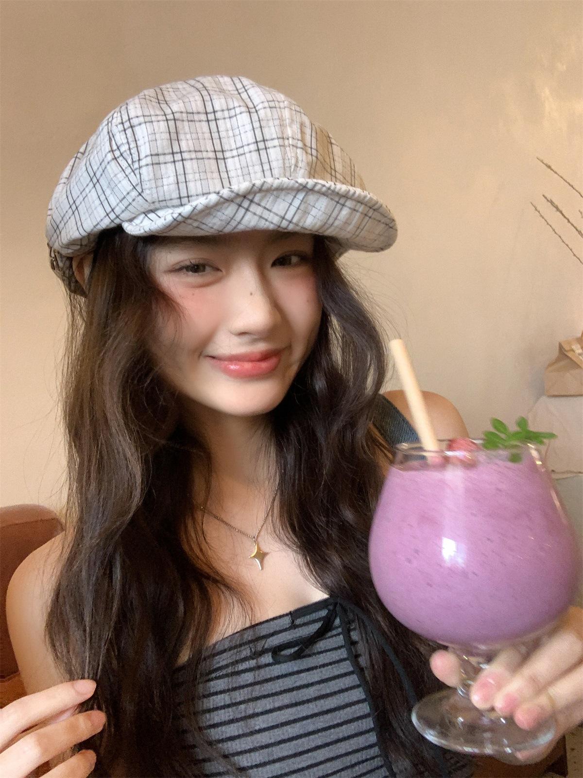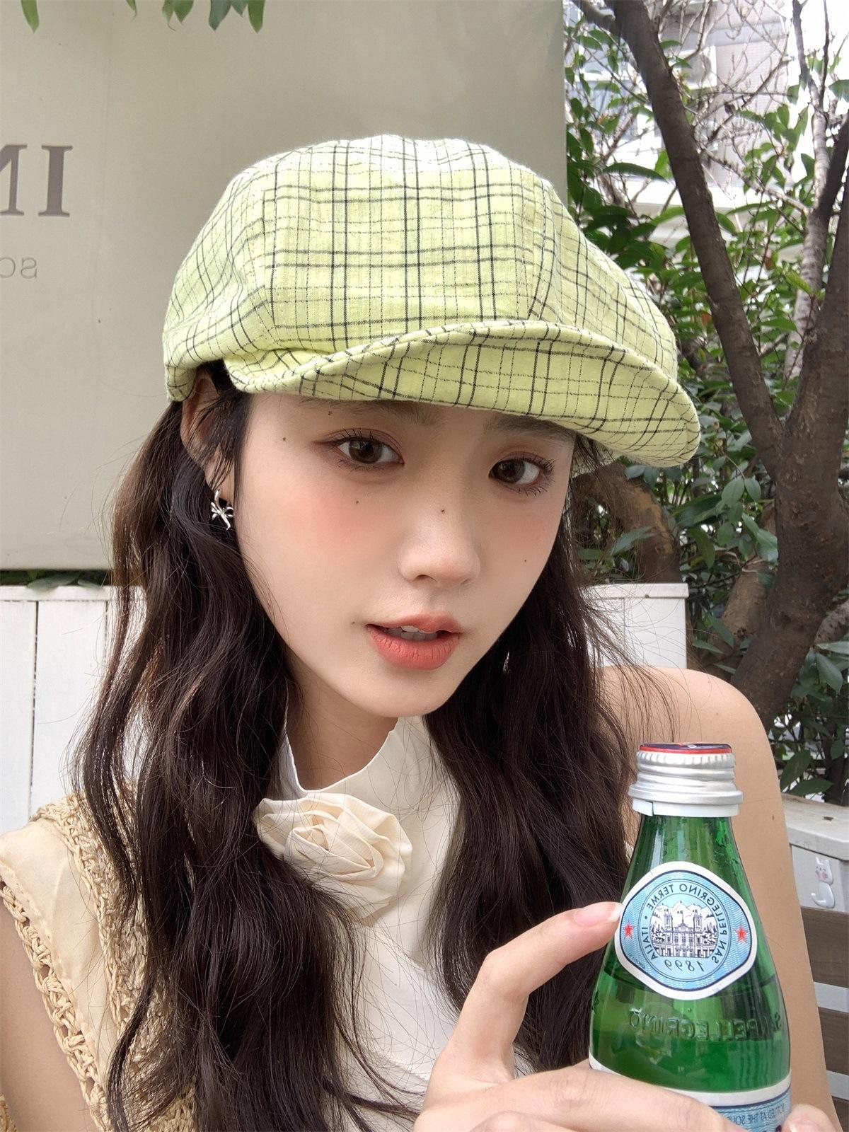 Boina a cuadros artística retro japonesa para niños, moda de primavera y verano, casual, combinable con todo, de pintor, octogonal, gorro nube, moderna