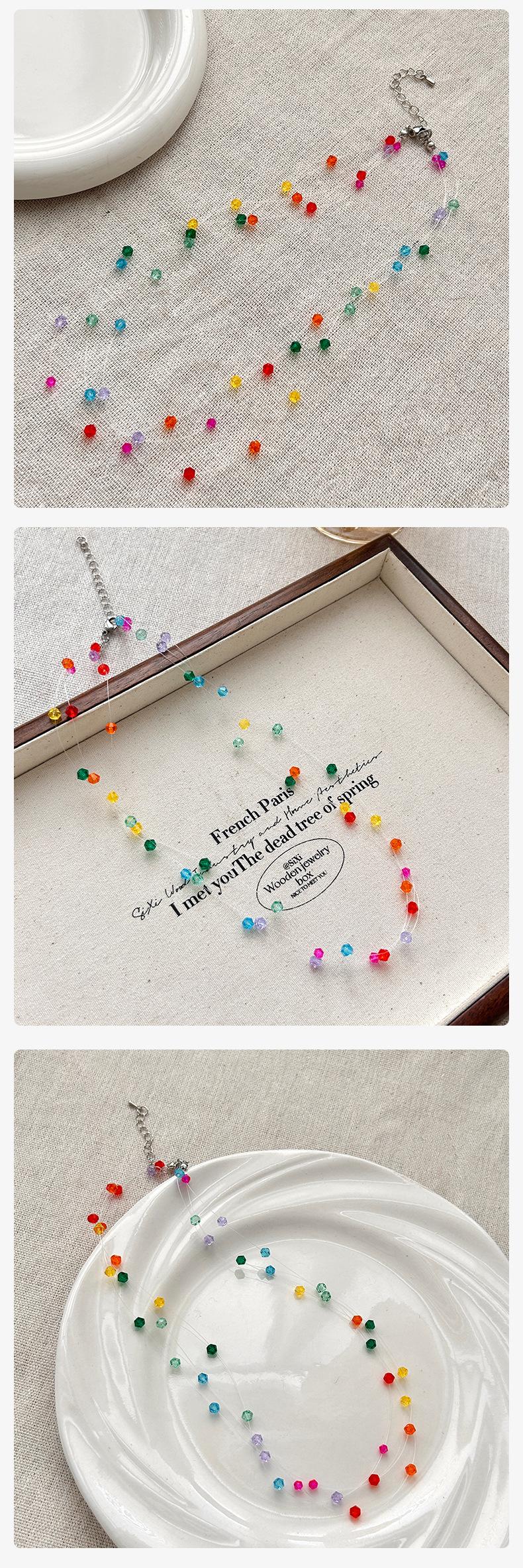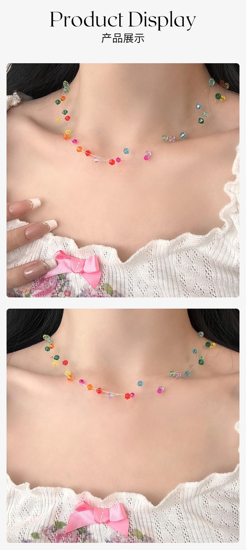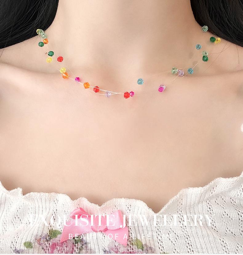 Collar de cuentas de cristal de color dopamina, dulce y bonito, de primavera y verano, para mujer, con diseño superpuesto de múltiples capas, cadena de clavícula.