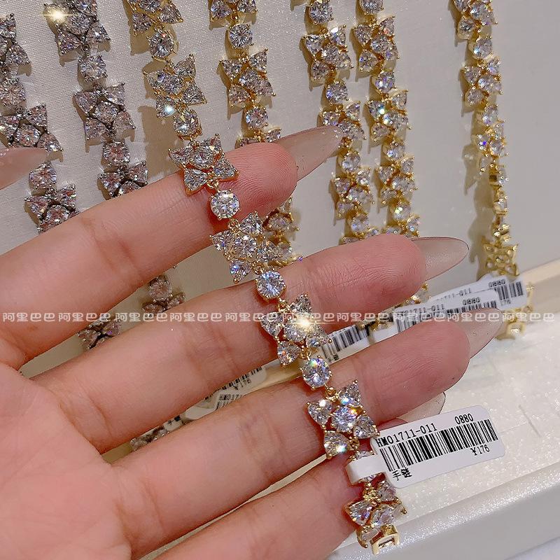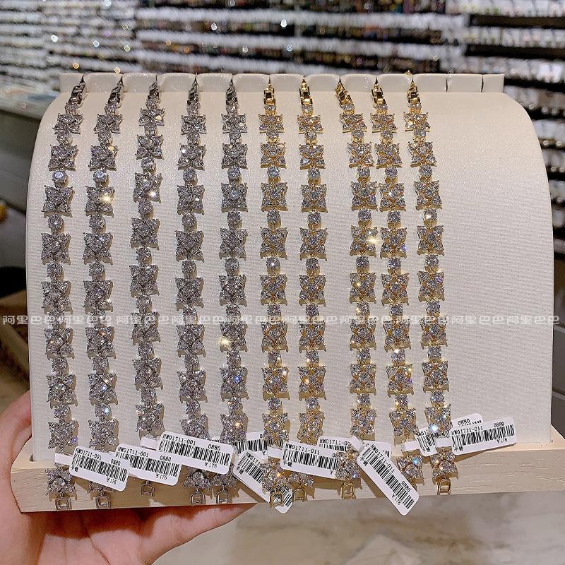 Pulsera de Flores de Diamantes Super Flash, Lujosa Moda Elegante de Diamantes Completos, Pulsera de Lujo Accesible, Pulsera de Alta Gama de Estilo Nicho Personalizado