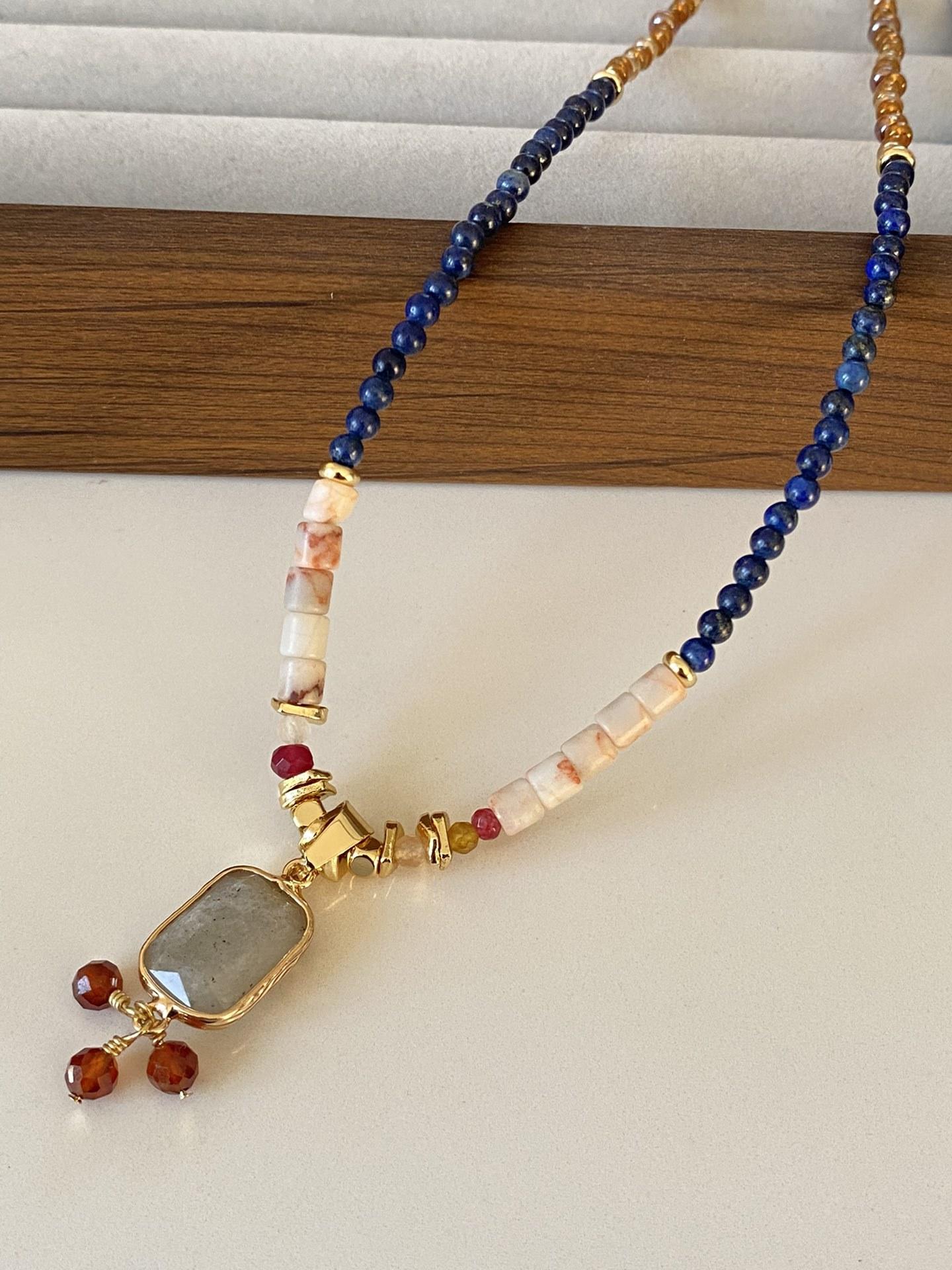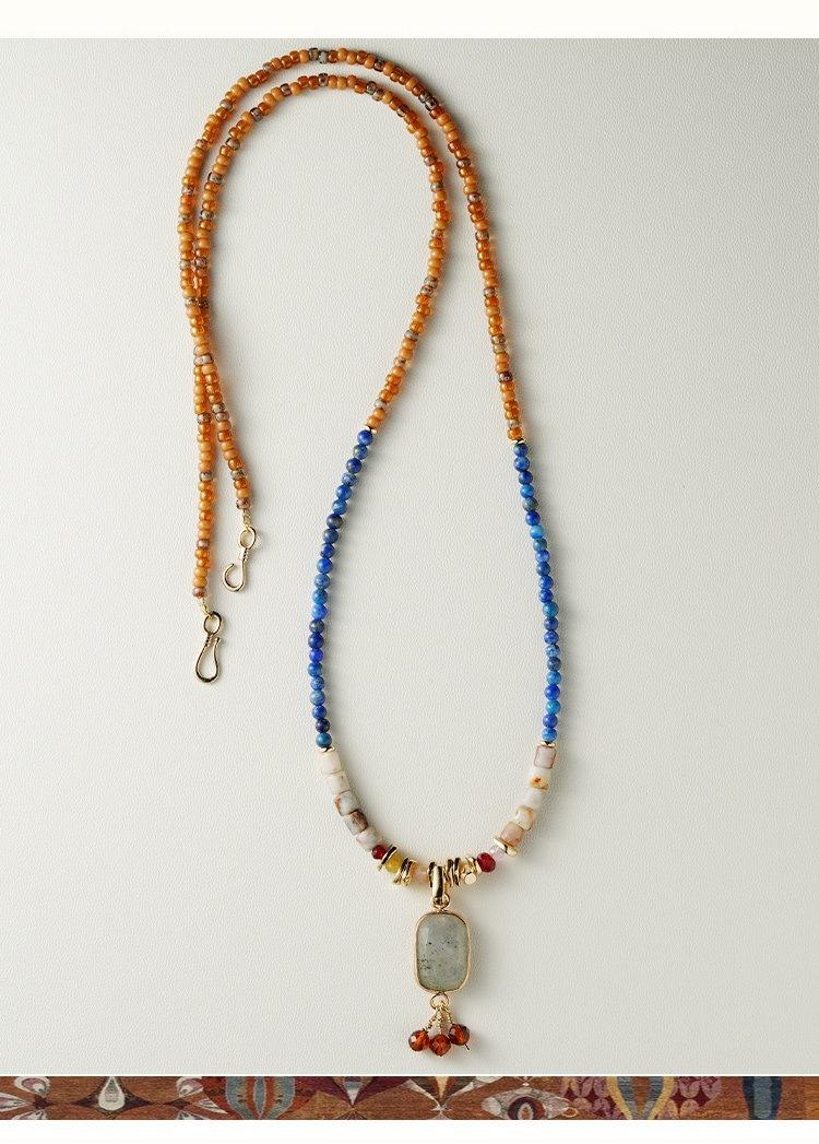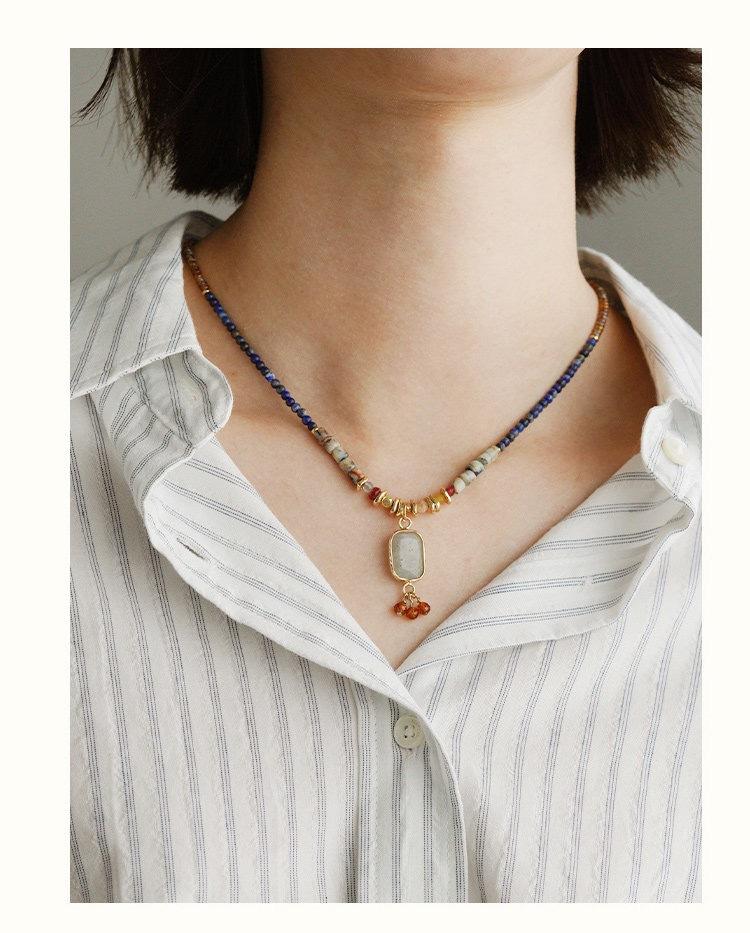 Collar de cuentas chino Dunhuang, nuevo, de estilo nicho, con piedras naturales de la época medieval, elegante y oriental, con cadena tipo suéter.