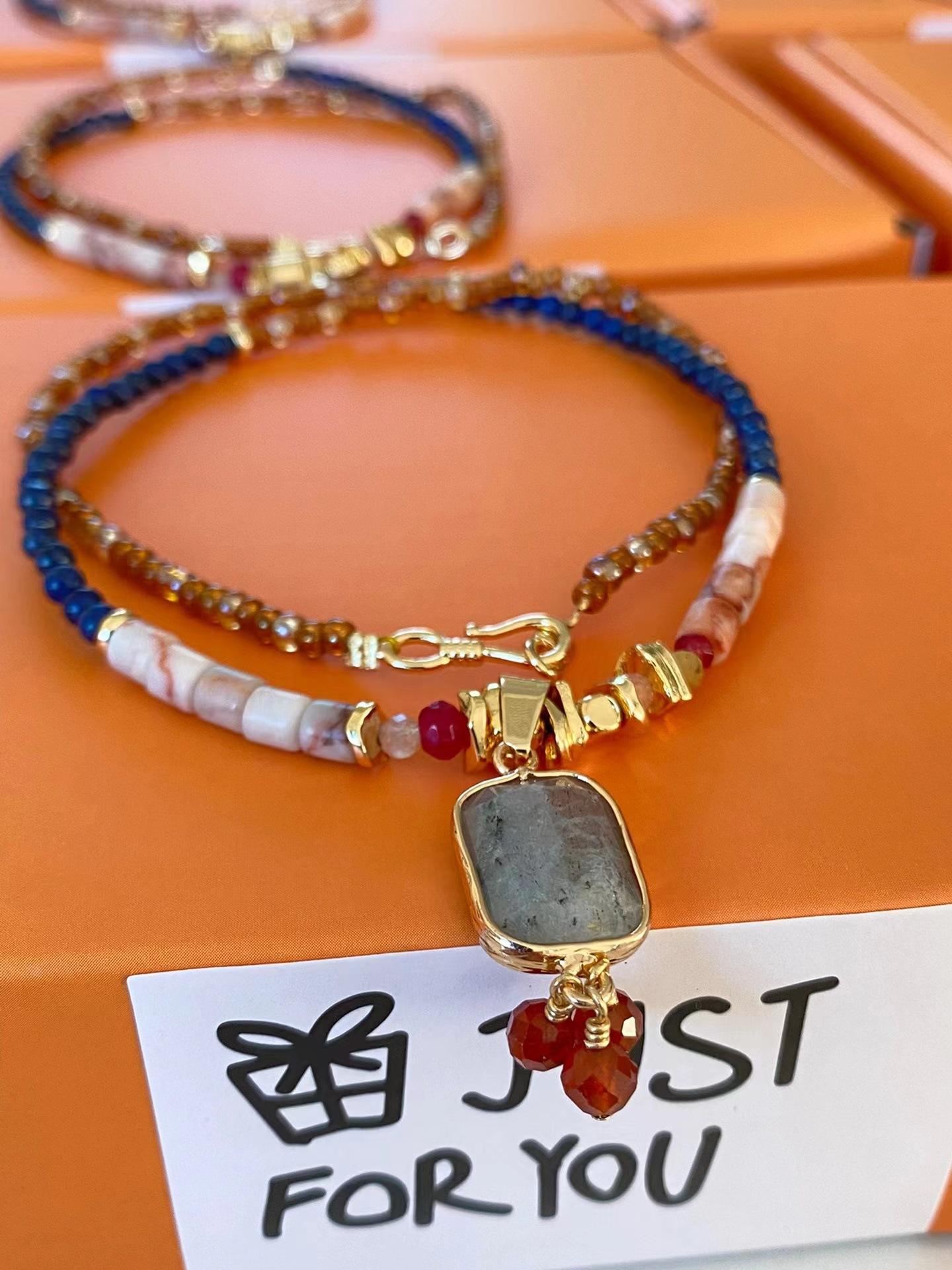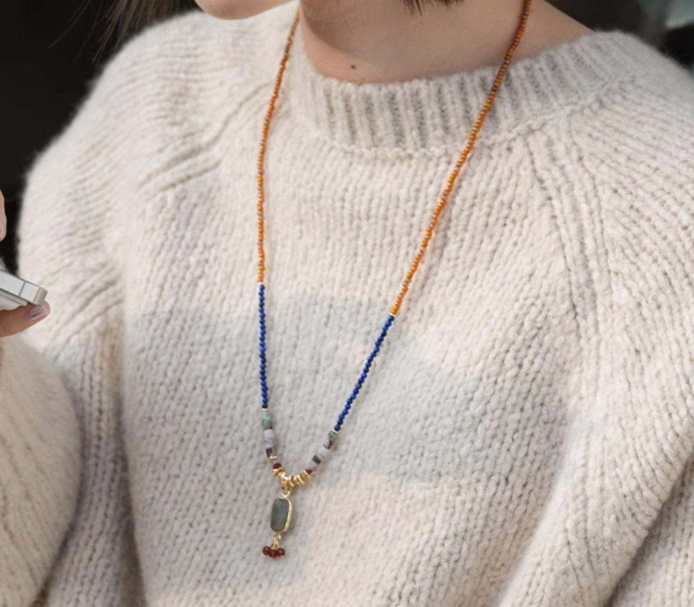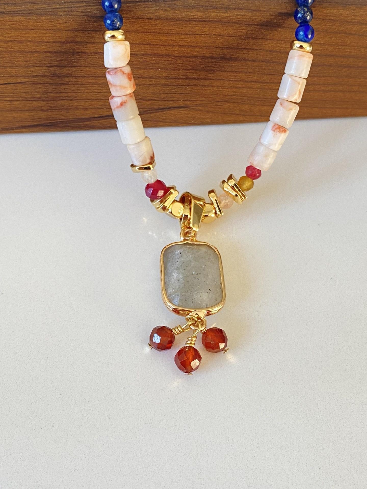 Collar de cuentas chino Dunhuang, nuevo, de estilo nicho, con piedras naturales de la época medieval, elegante y oriental, con cadena tipo suéter.