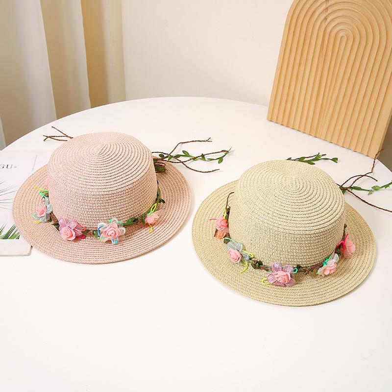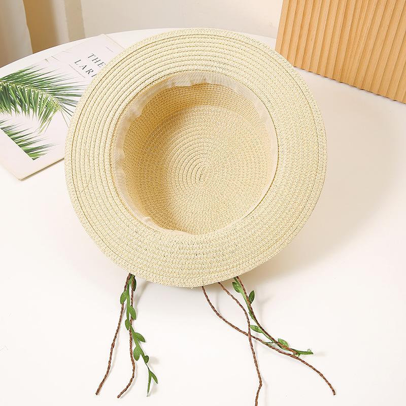 Nueva Llegada Corona Sombrero de Paja de Copa Plana para Mujer Protección Solar Estilo Occidental Sombrero de Playa Moda Coreana Viaje al Aire Libre Sombrero de Copa para Mujer