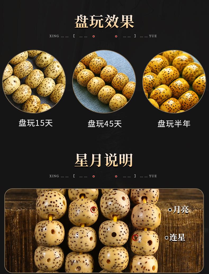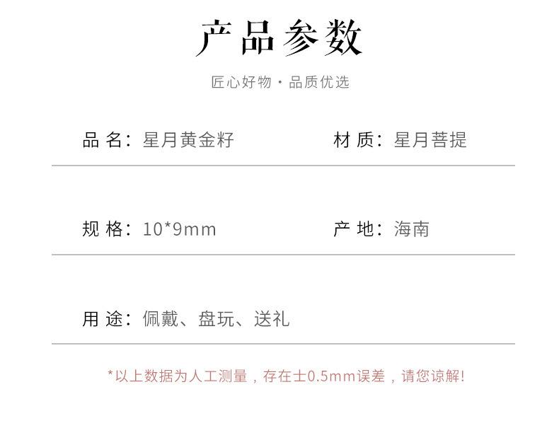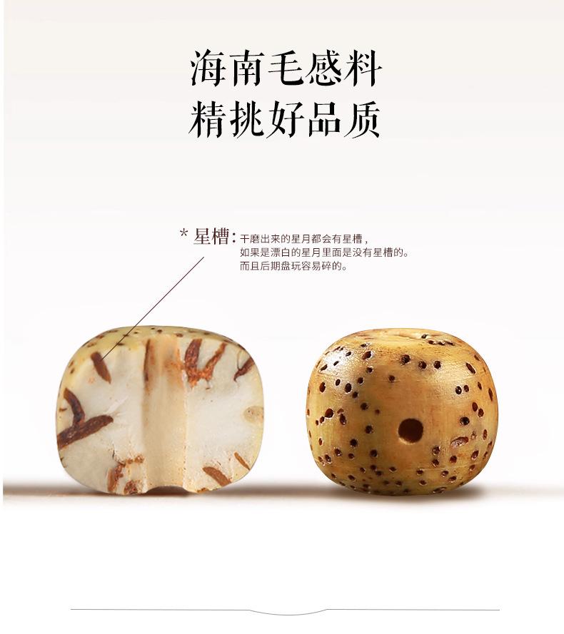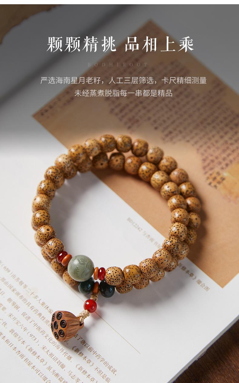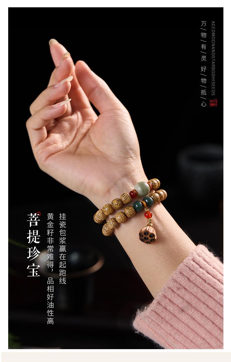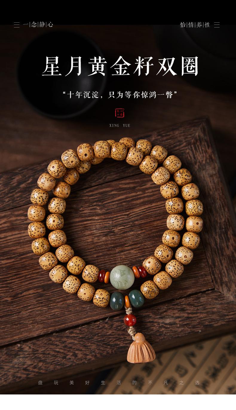 Pulsera original ecológica de Hainan con semillas de oro, estrella, luna y bodhi, pulsera de cuentas de doble círculo para hombres y mujeres, luna creciente, Gaomi Shun, texto blanco, reproducción