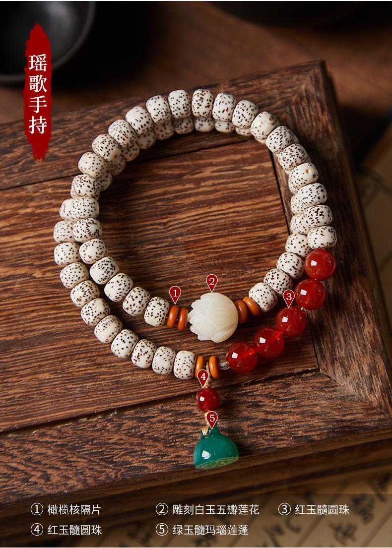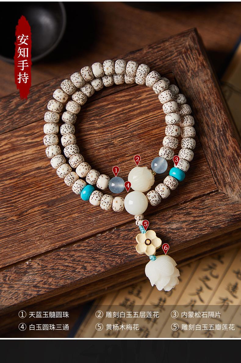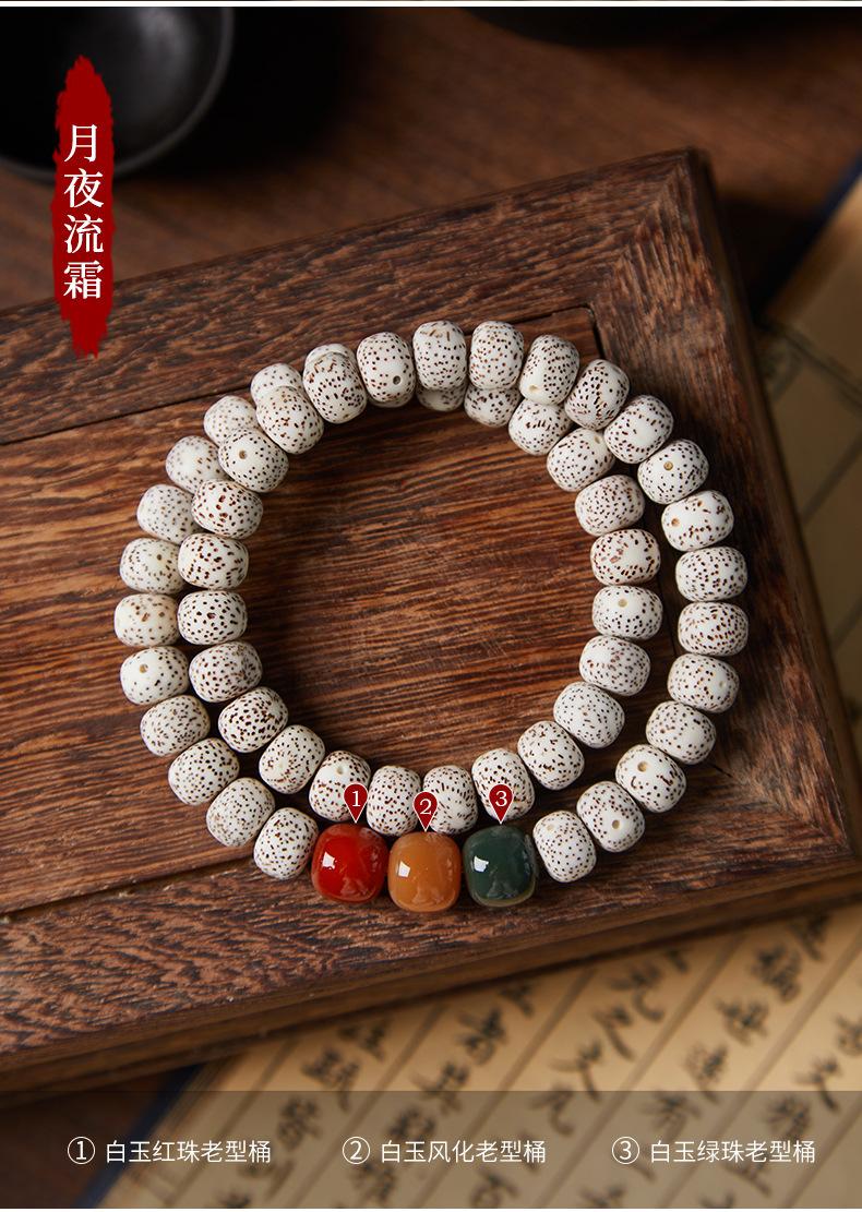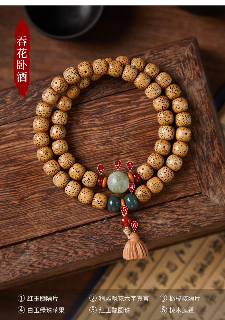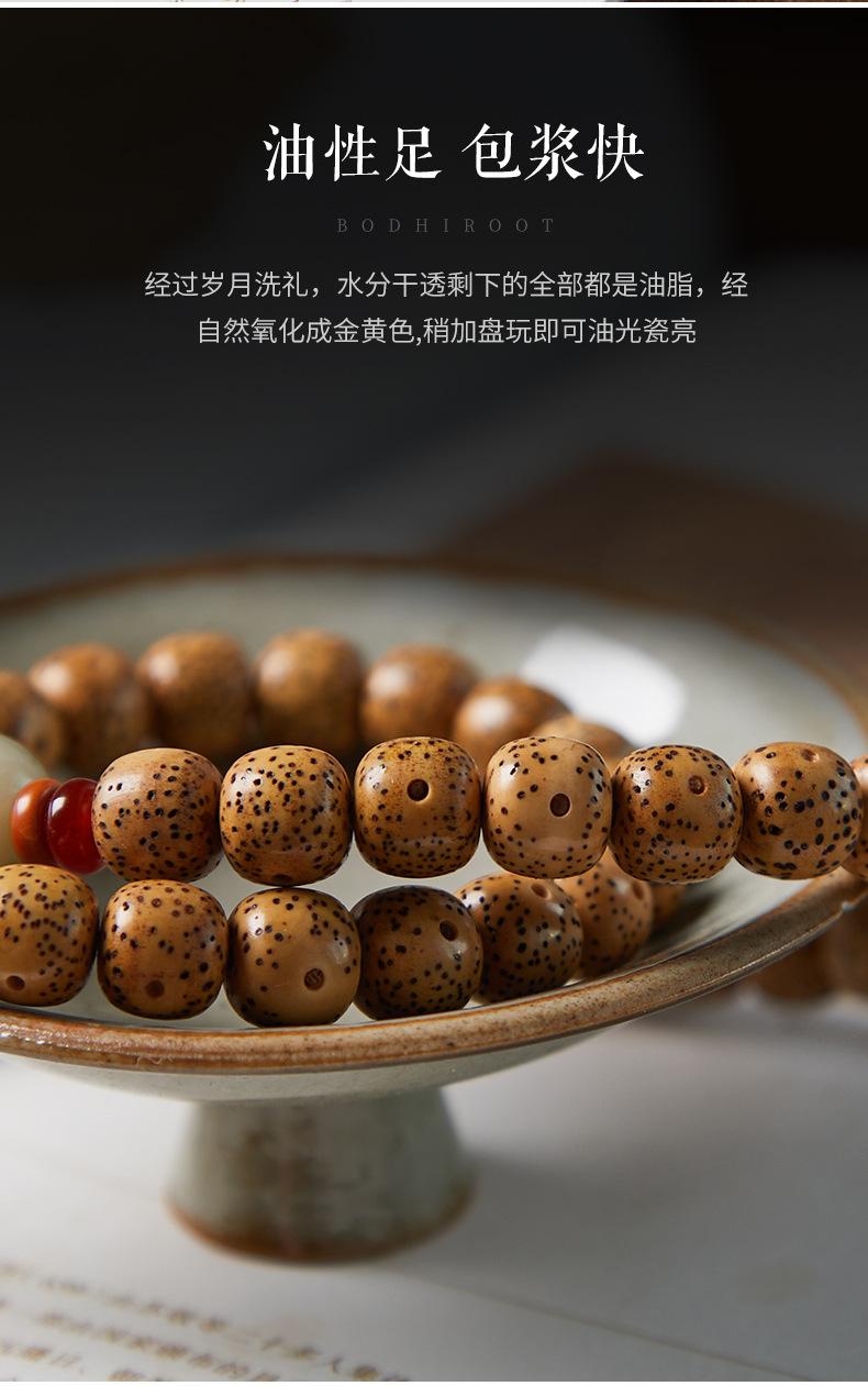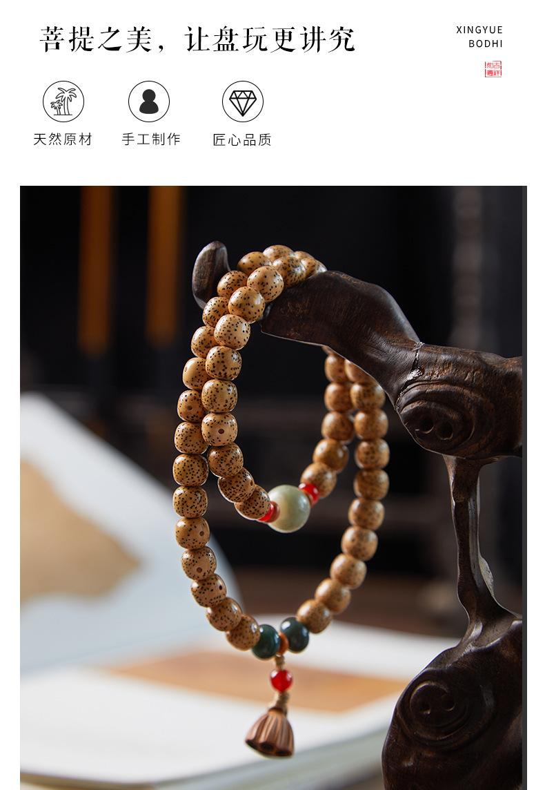 Pulsera original ecológica de Hainan con semillas de oro, estrella, luna y bodhi, pulsera de cuentas de doble círculo para hombres y mujeres, luna creciente, Gaomi Shun, texto blanco, reproducción