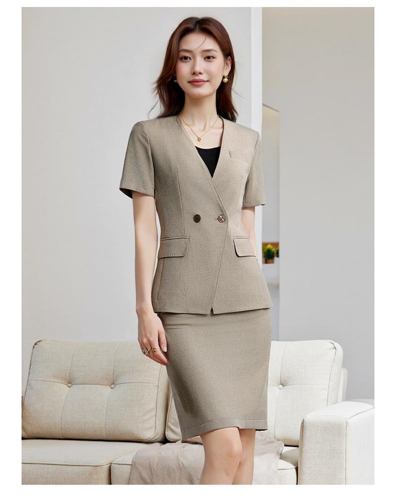 Trajes profesionales de manga corta de verano de moda para mujer, trajes de falda, ropa de trabajo de joyería de esteticista, ropa de trabajo de recepción de hotel