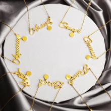 Collar con letras en inglés de moda de gran venta transfronteriza para mujer, joyería de diamantes de acero de titanio, collar con colgante de doce constelaciones, cadena de clavícula |