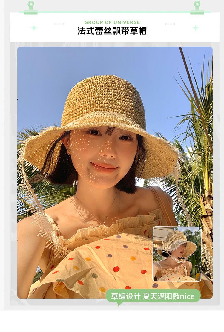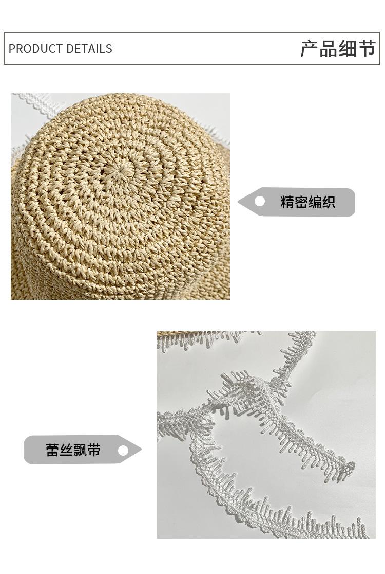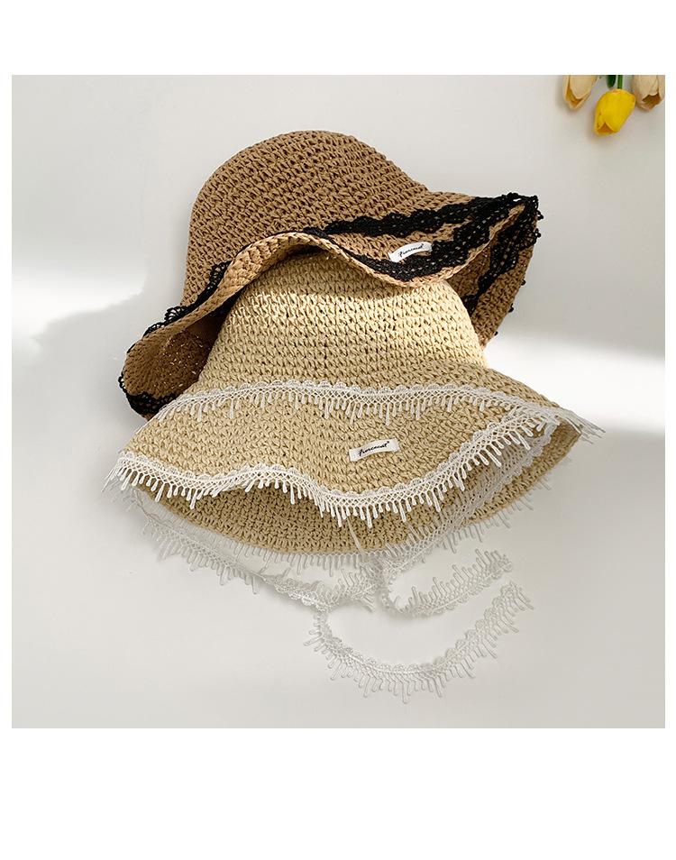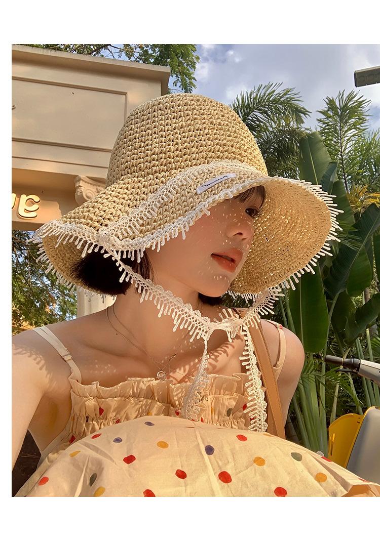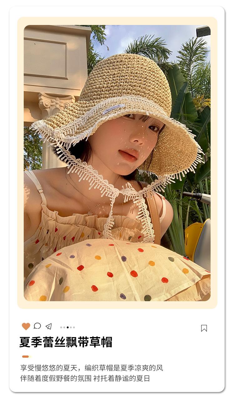 2025 Nuevo Encaje Encaje Correa Sombrero de Paja Sombrero de Sol de Playa de Verano para Mujer Sombrero de Sol para Cabeza Grande