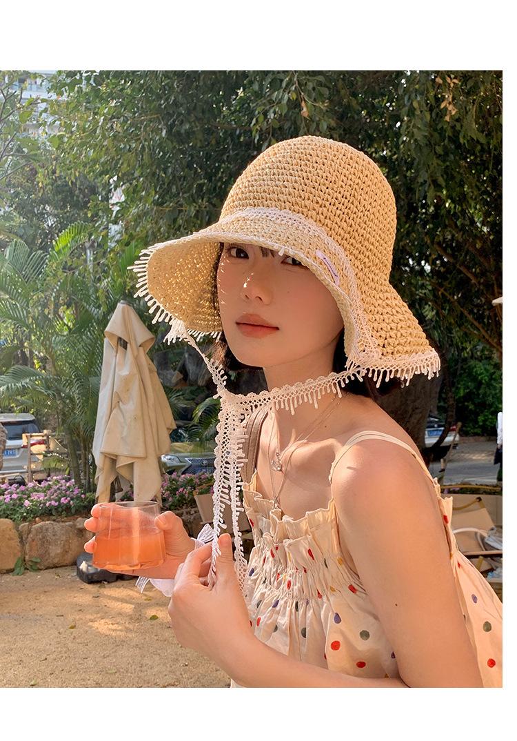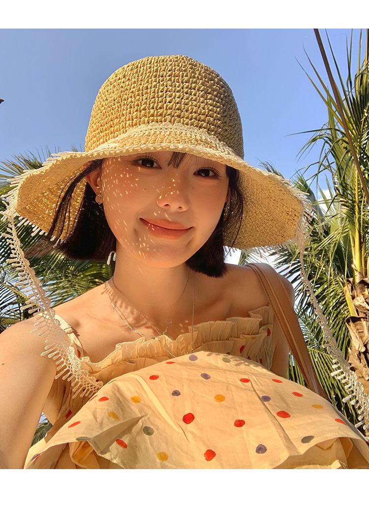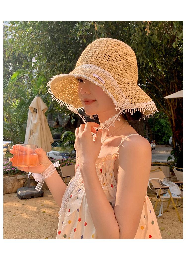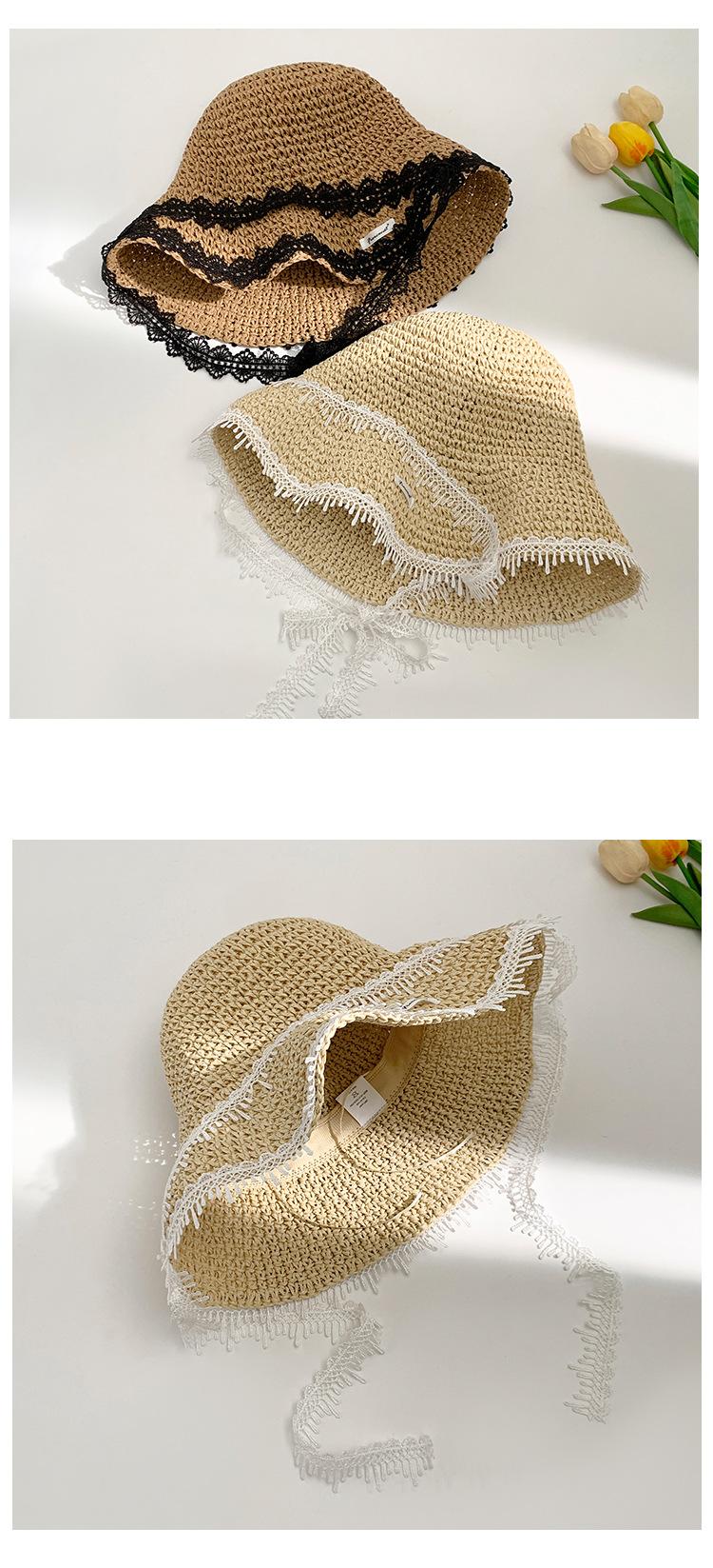2025 Nuevo Encaje Encaje Correa Sombrero de Paja Sombrero de Sol de Playa de Verano para Mujer Sombrero de Sol para Cabeza Grande