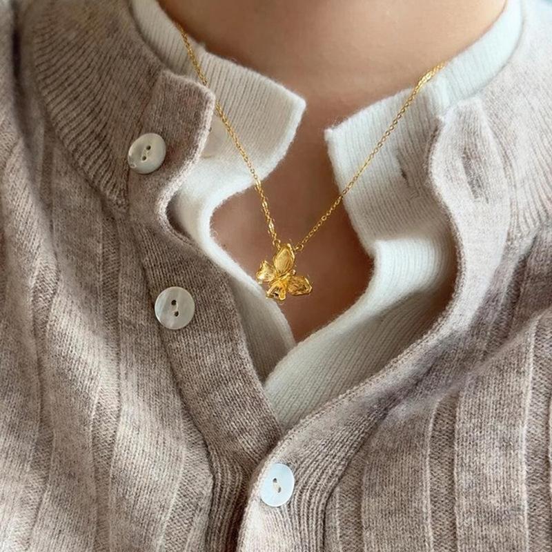 Collar de mariposa cepillado de oro antiguo medio para mujer, nuevo estilo chino, exquisito colgante retro, cadena de clavícula para regalo de novia
