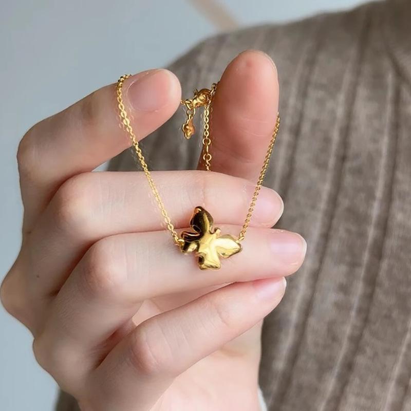 Butterfly necklace (stainless steel gold plated), Butterfly earrings (gold-plated copper), Butterfly bracelet ...