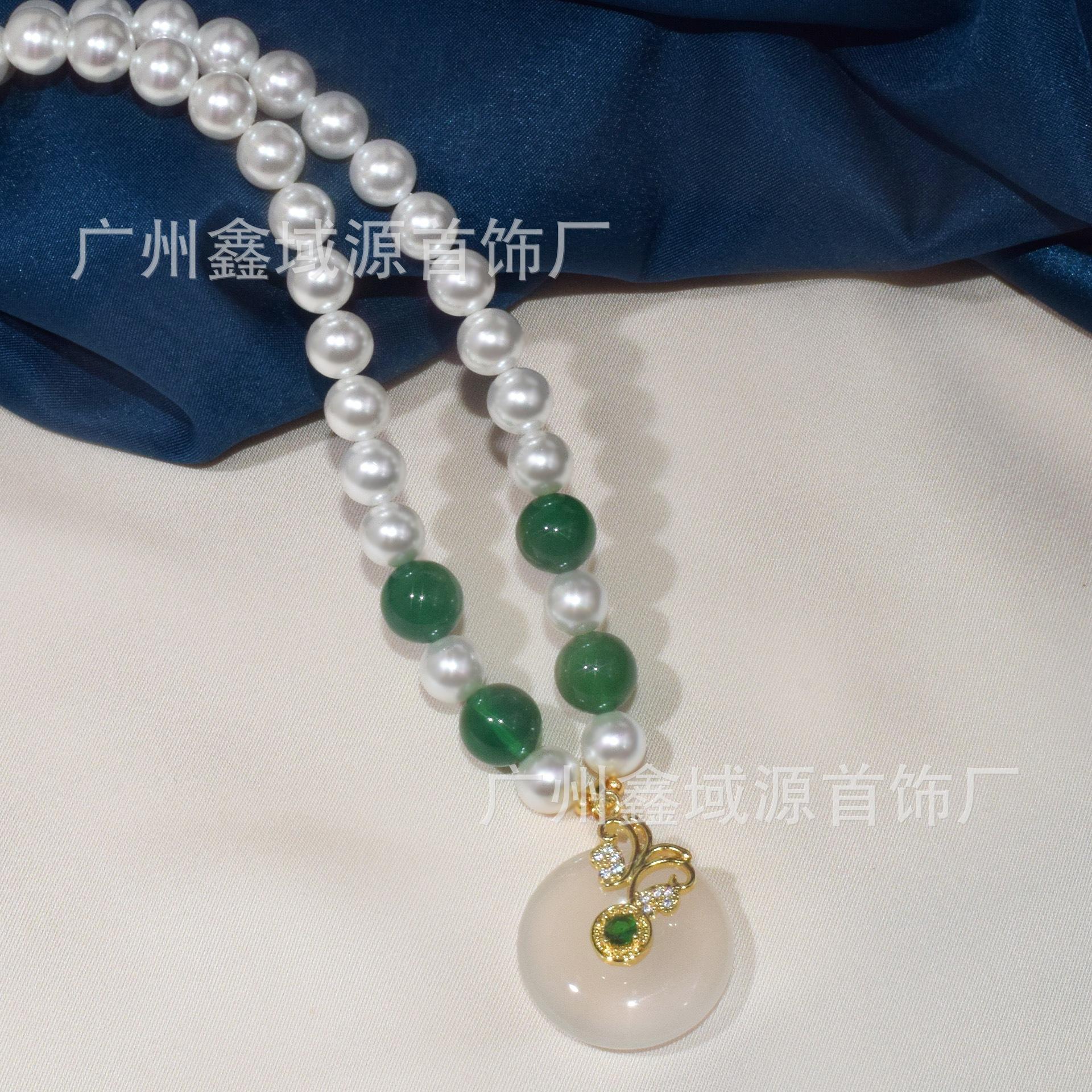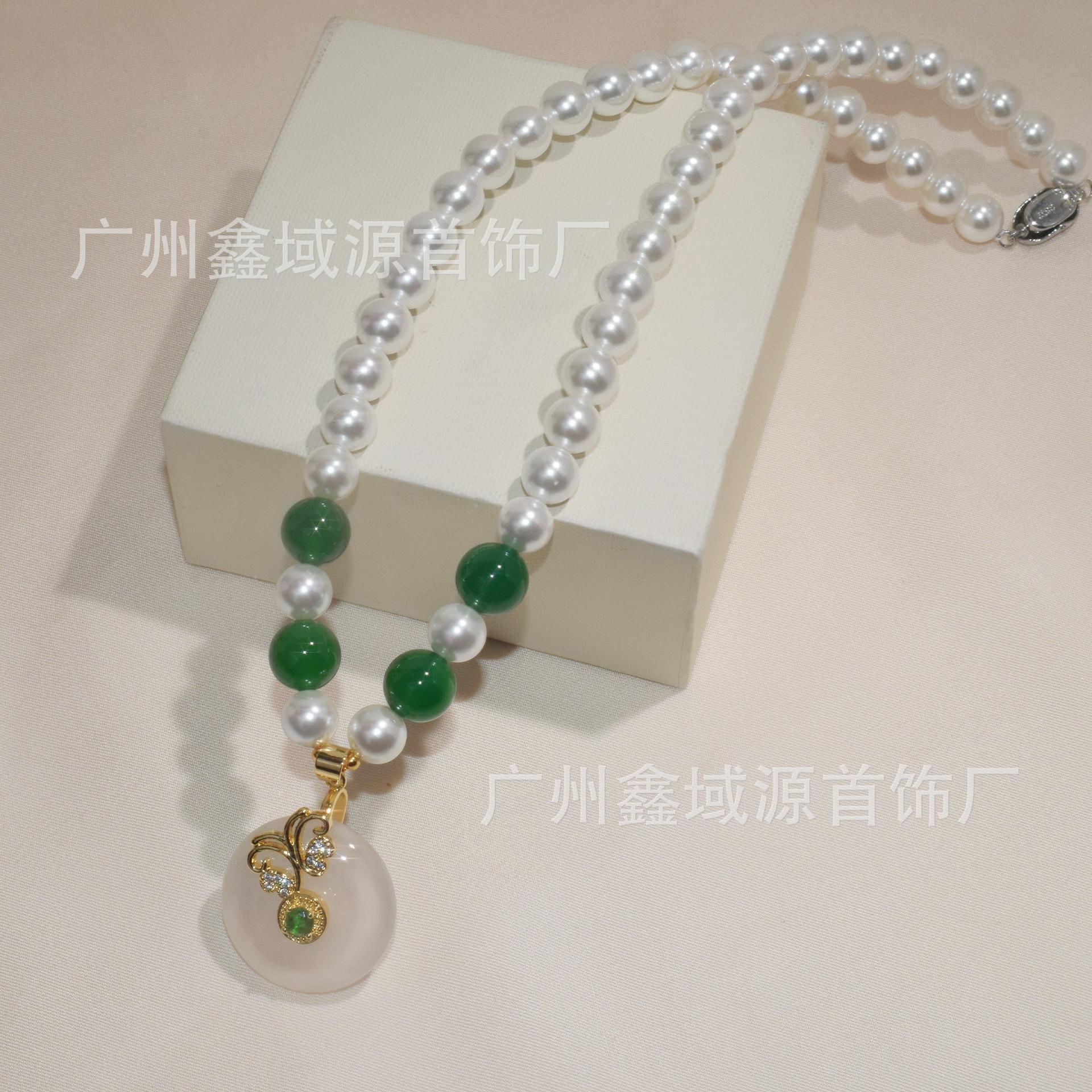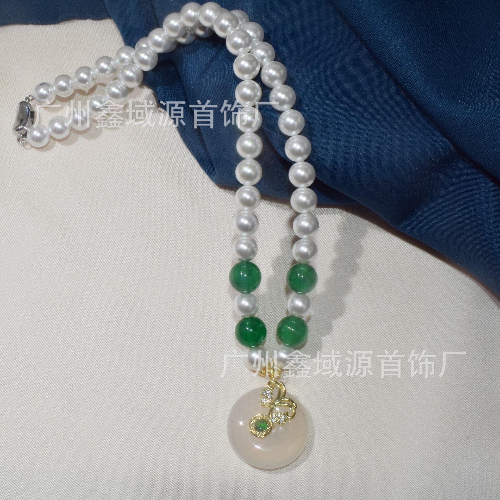 Collar de Perlas con Hebilla de Seguridad de Alta Calidad, Colgante de Calcedonia Natural, Ágata Blanca, Cadena Madre, Juego de Joyería Popular al Mayoreo