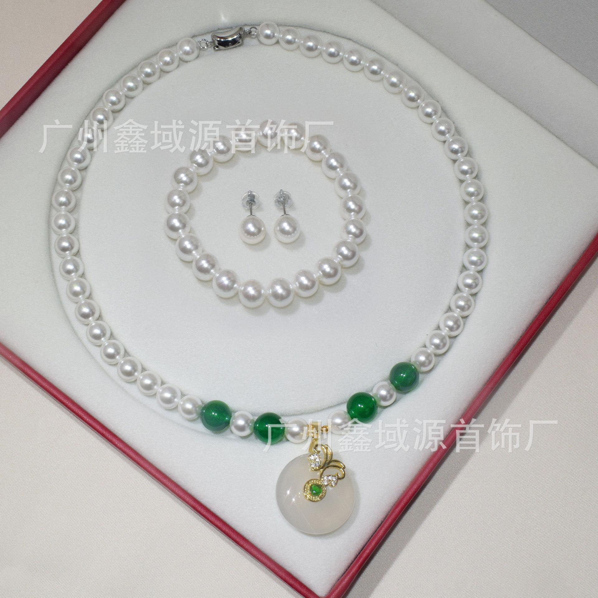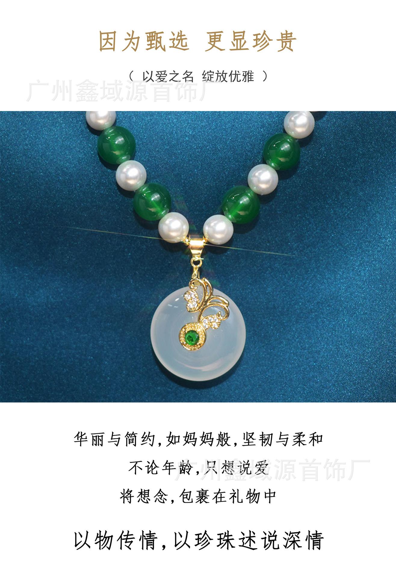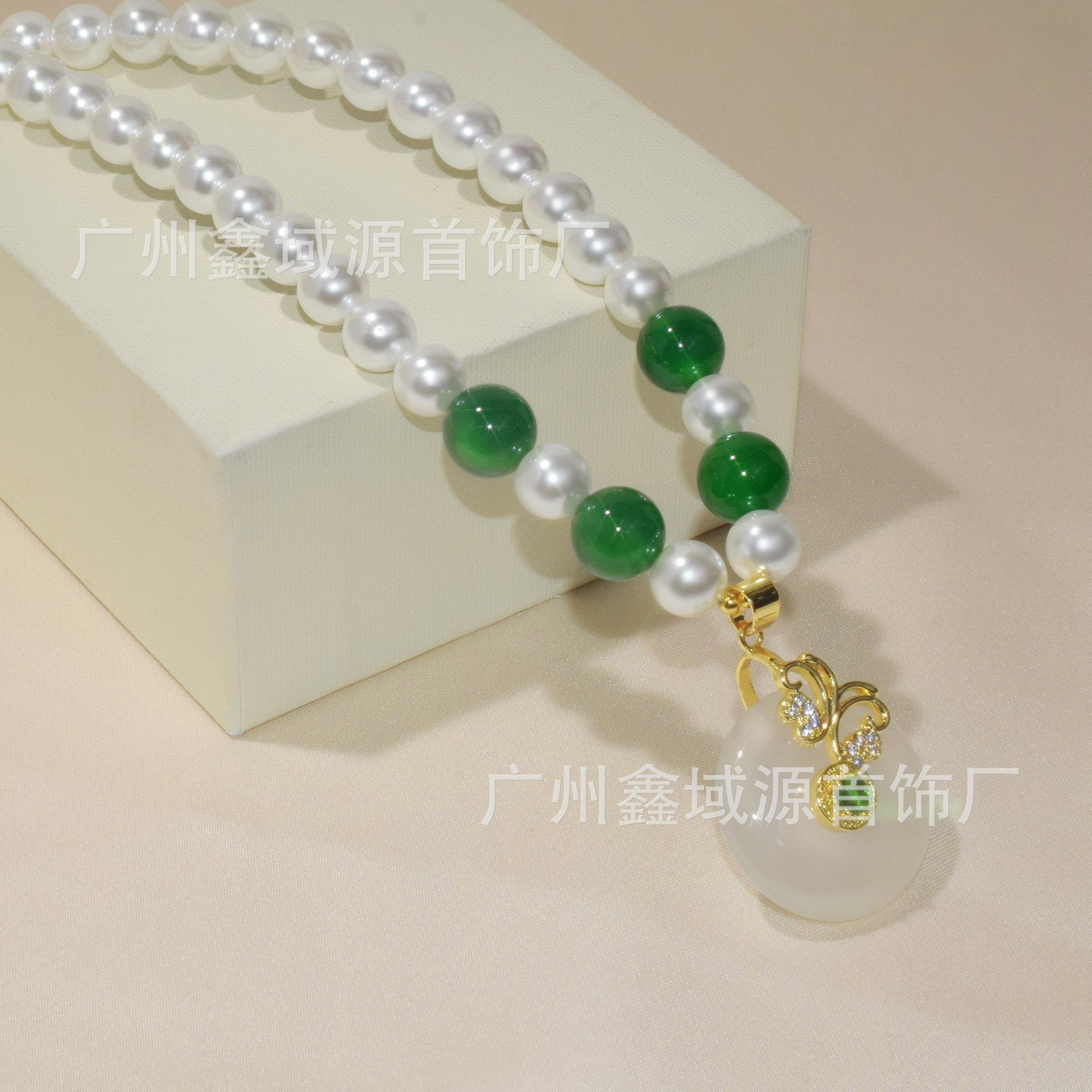 Collar de Perlas con Hebilla de Seguridad de Alta Calidad, Colgante de Calcedonia Natural, Ágata Blanca, Cadena Madre, Juego de Joyería Popular al Mayoreo