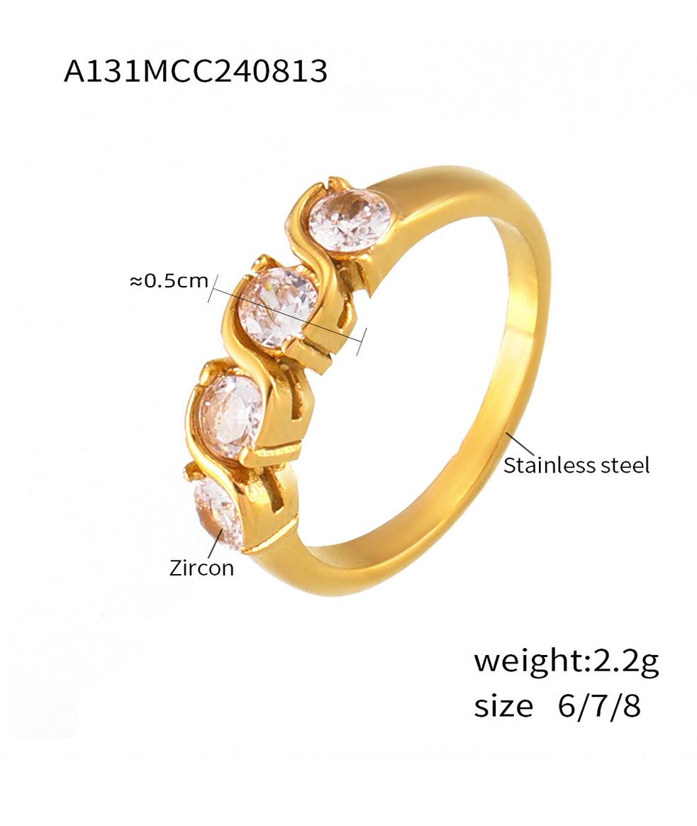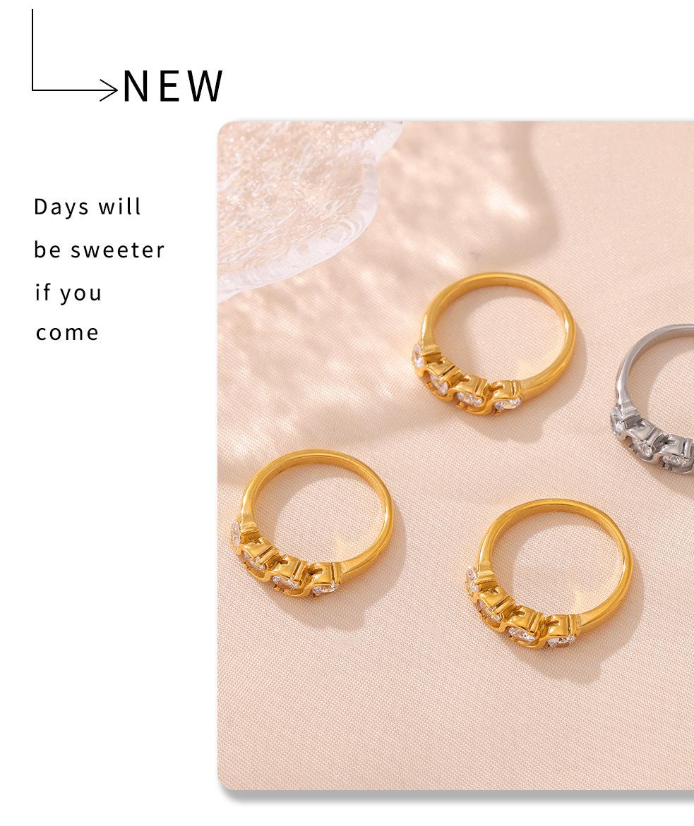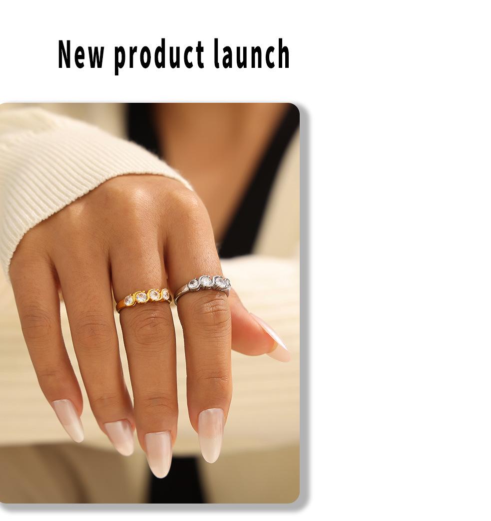 Anillo de acero inoxidable con incrustaciones de circonita de una sola fila, chapado en oro real de 18 quilates, estilo palacio frío, para mujer, estilo europeo y americano