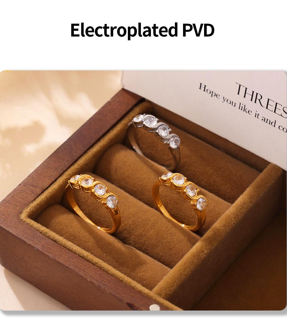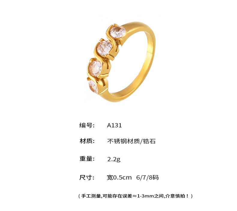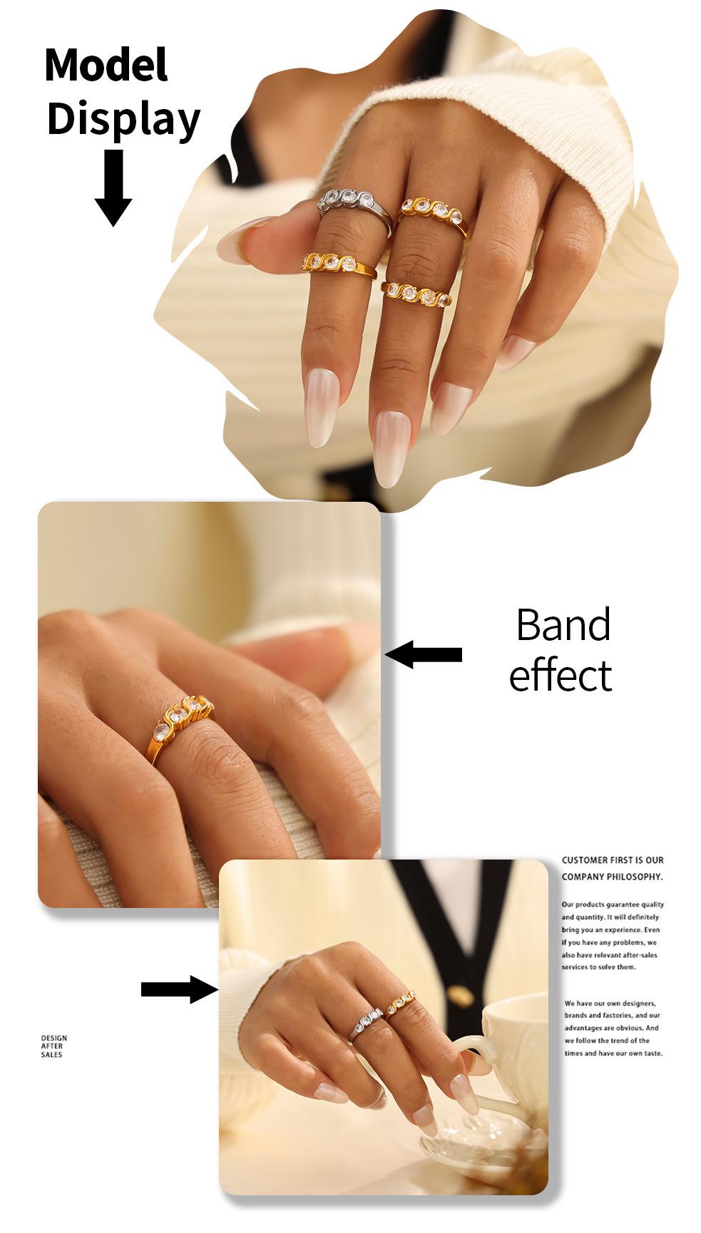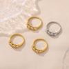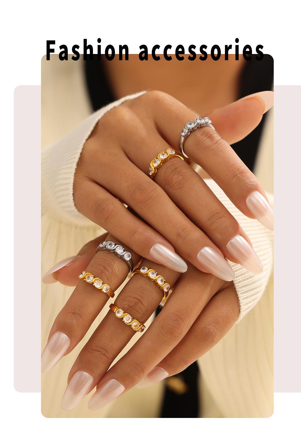 Anillo de acero inoxidable con incrustaciones de circonita de una sola fila, chapado en oro real de 18 quilates, estilo palacio frío, para mujer, estilo europeo y americano