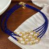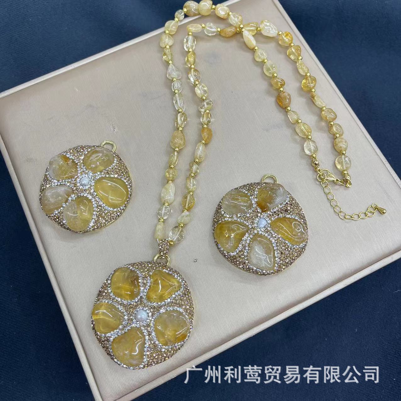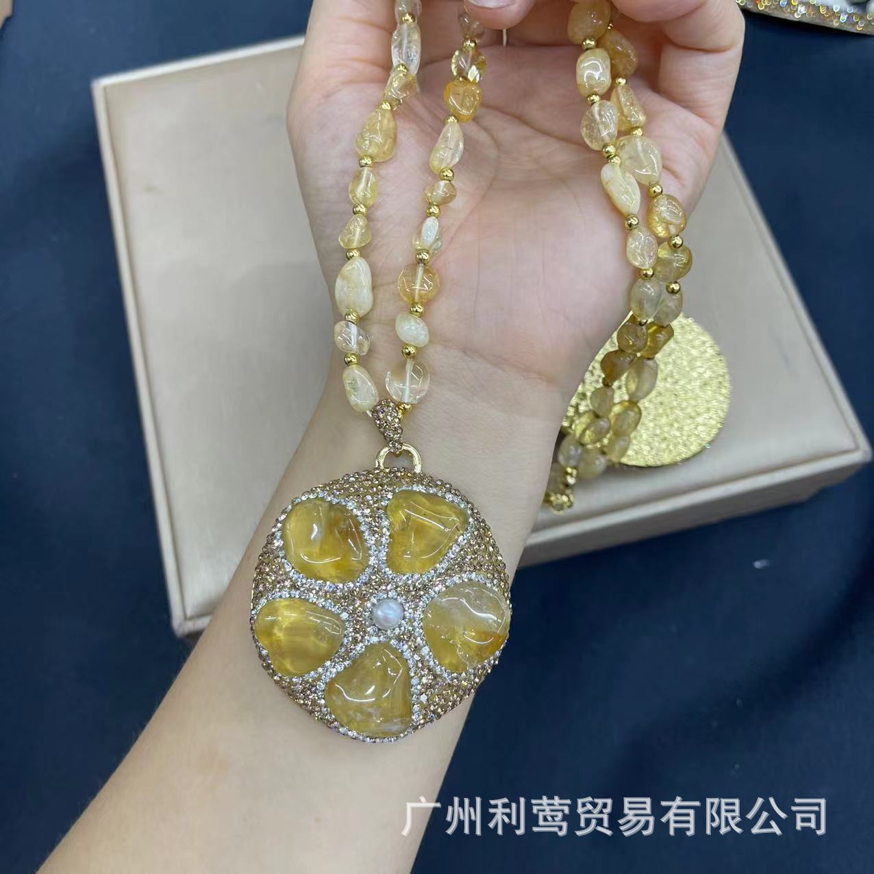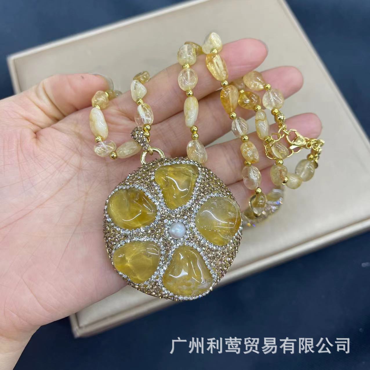 Collar de Perlas Barrocas Naturales con Forma de Trébol de Cuatro Hojas Joyería de Moda Cristal Gema de Mineral en Bruto Incrustada Cadena de Perlas Pequeñas