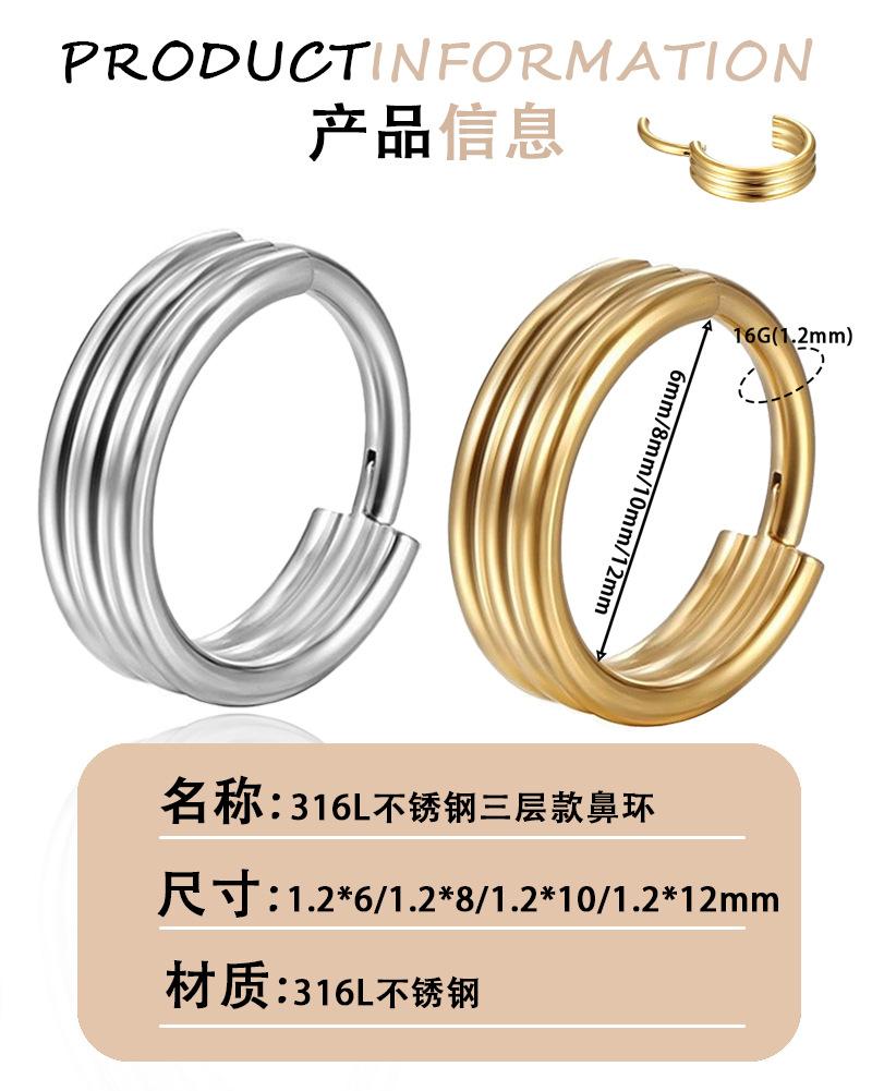 Amazon Basic Acero Inoxidable 316L Anillo de Nariz Multicapa Anillo de Nariz Moda Europea y Americana Aretes de Aro Cerrado Joyería para Perforación
