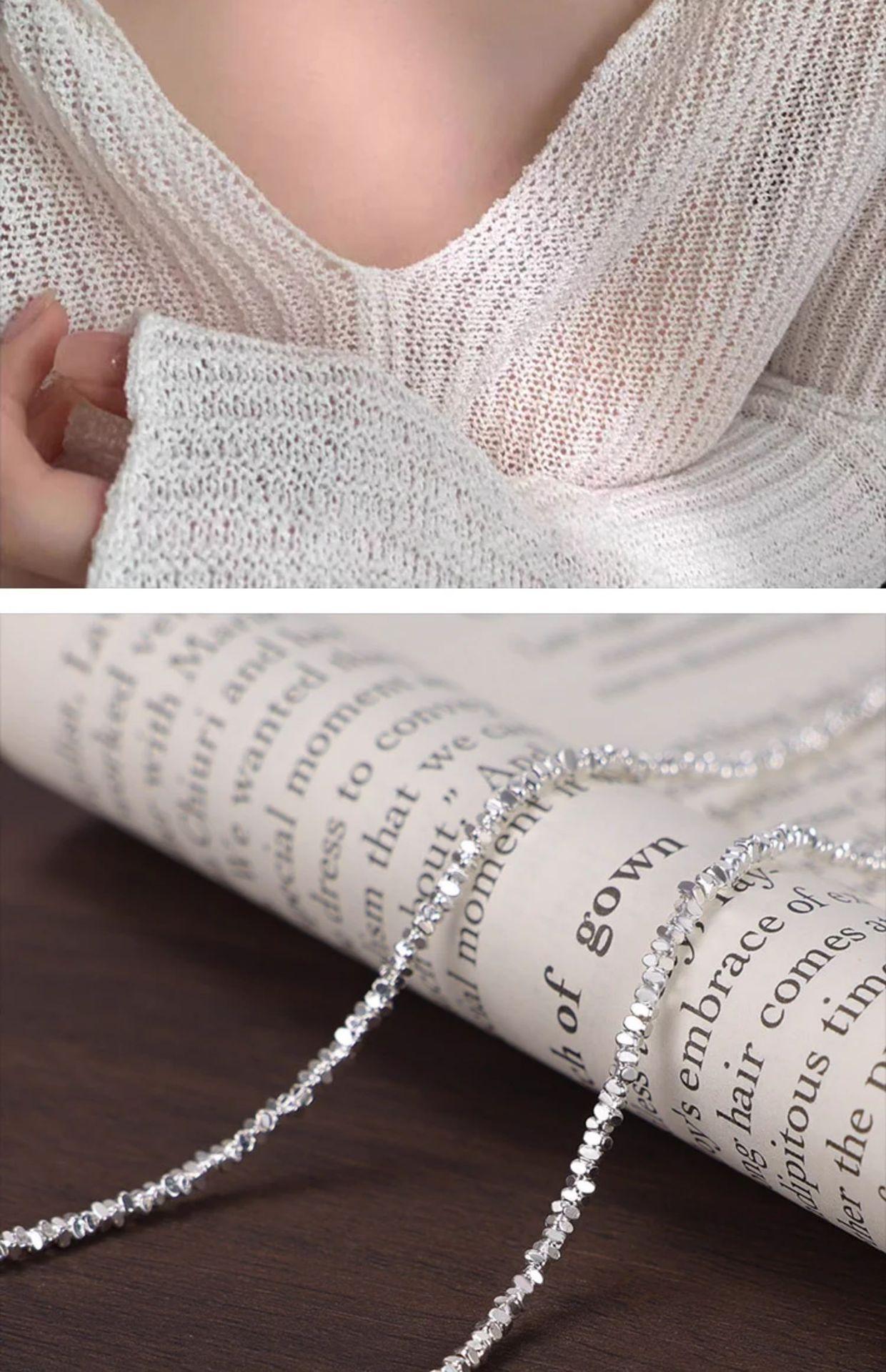 Imitación Gradiente Ojo de Gato Roto Plata Collar Mujer 2025 Nueva Entrada Lujo Nicho Alta Gama Elegante Cadena Clavícula Collar Cadena