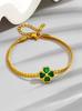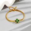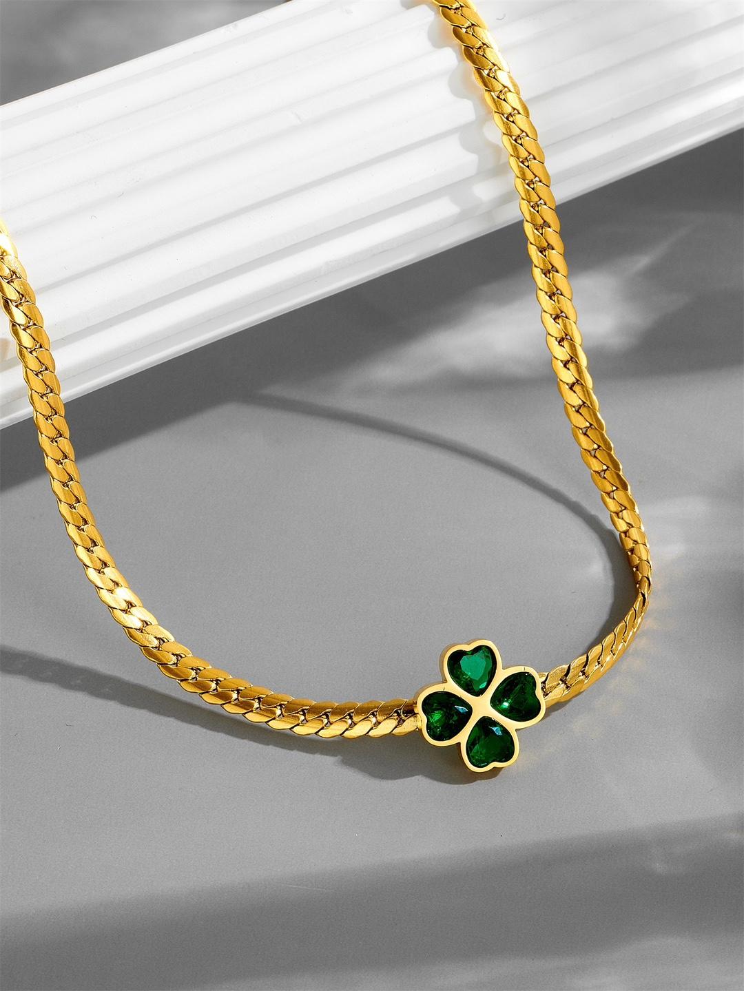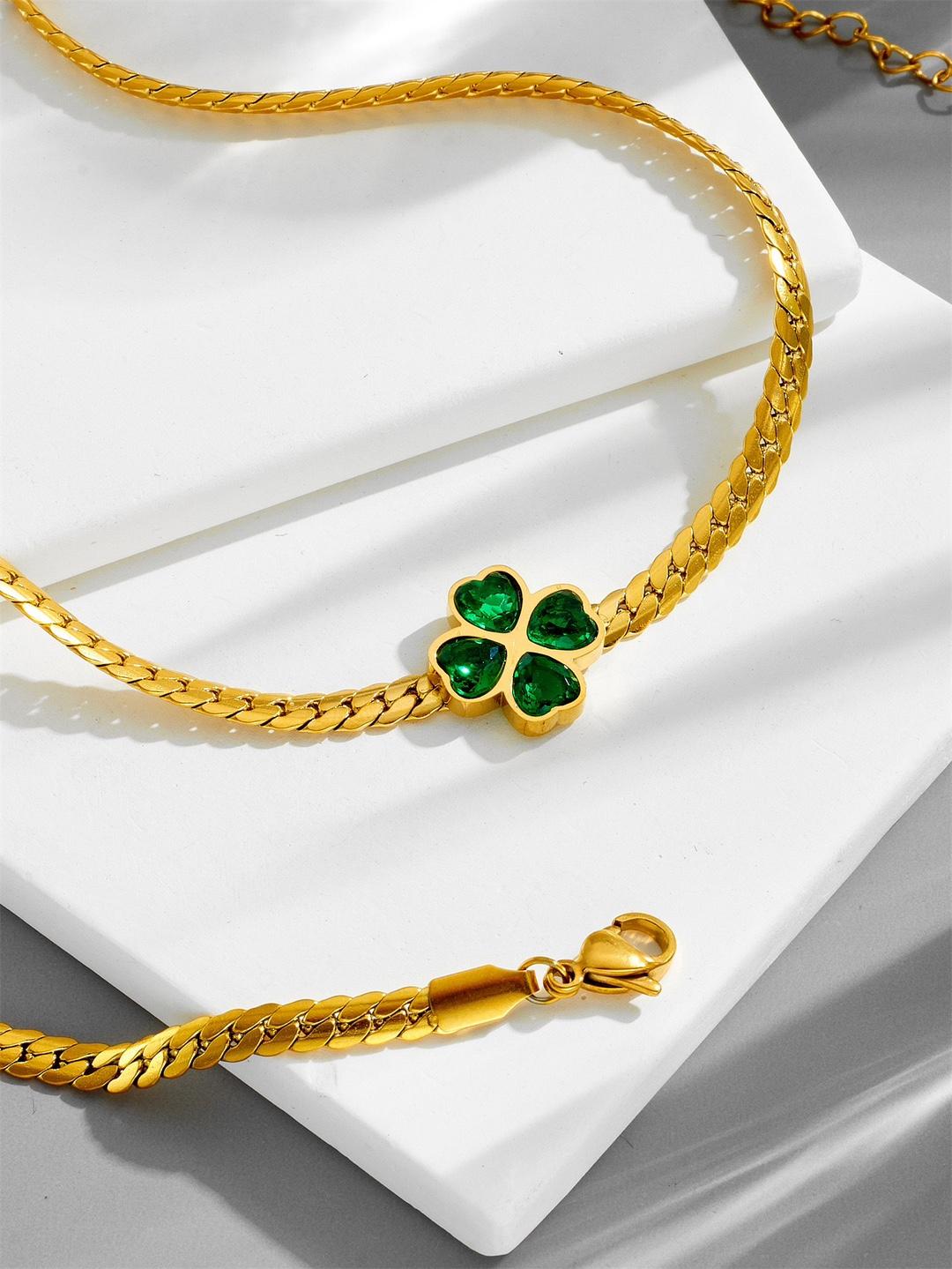 X615 four-leaf chlorophyll necklace gold, X615 four-leaf flower green stone bracelet gold, X615 four-leaf flow...
