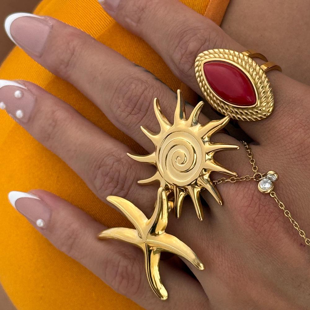 Anillo de ágata roja europea y americana Jingqiao acero titanio joyería que no se desvanece joyería de lujo ligero de alta gama anillo transfronterizo de acero inoxidable