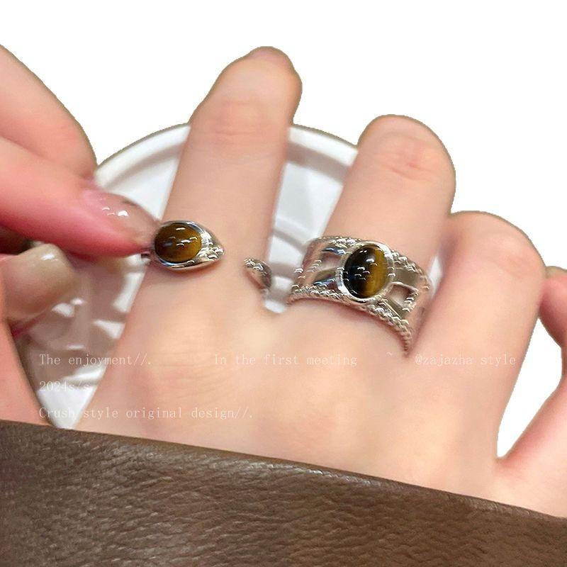 Anillo de Flor Ojo de Tigre Maillard para Mujer Diseño Nicho Vintage Anillo Abierto para Dedo Lujo Ligero Distintivo Anillo de Alto Nivel
