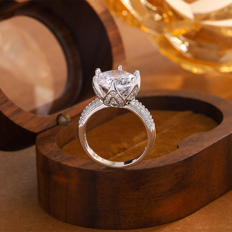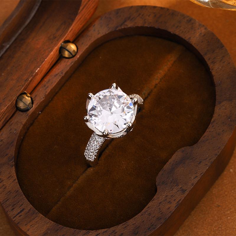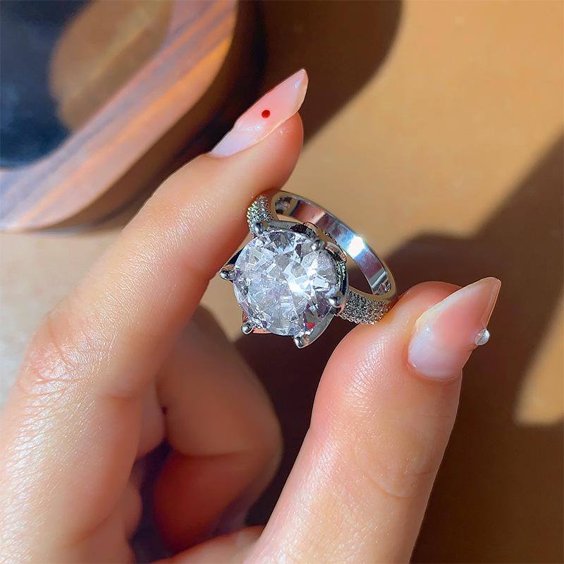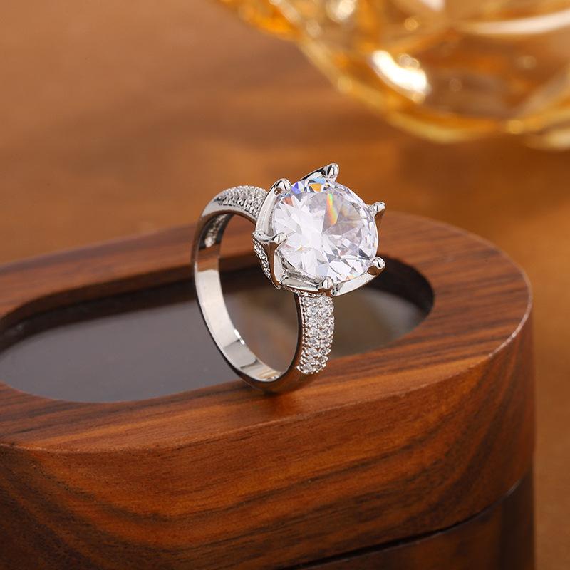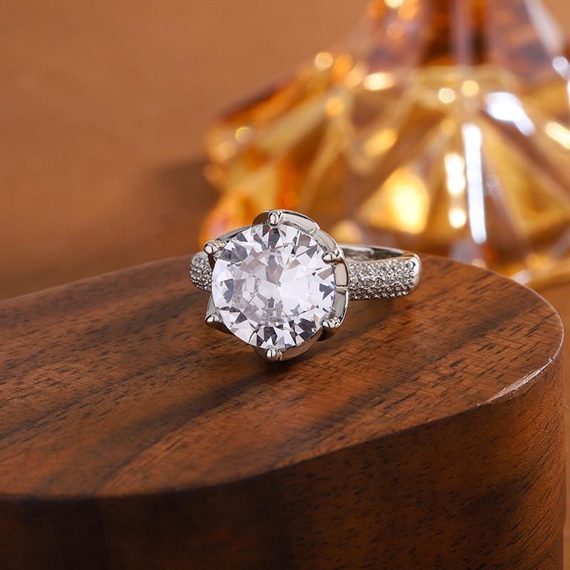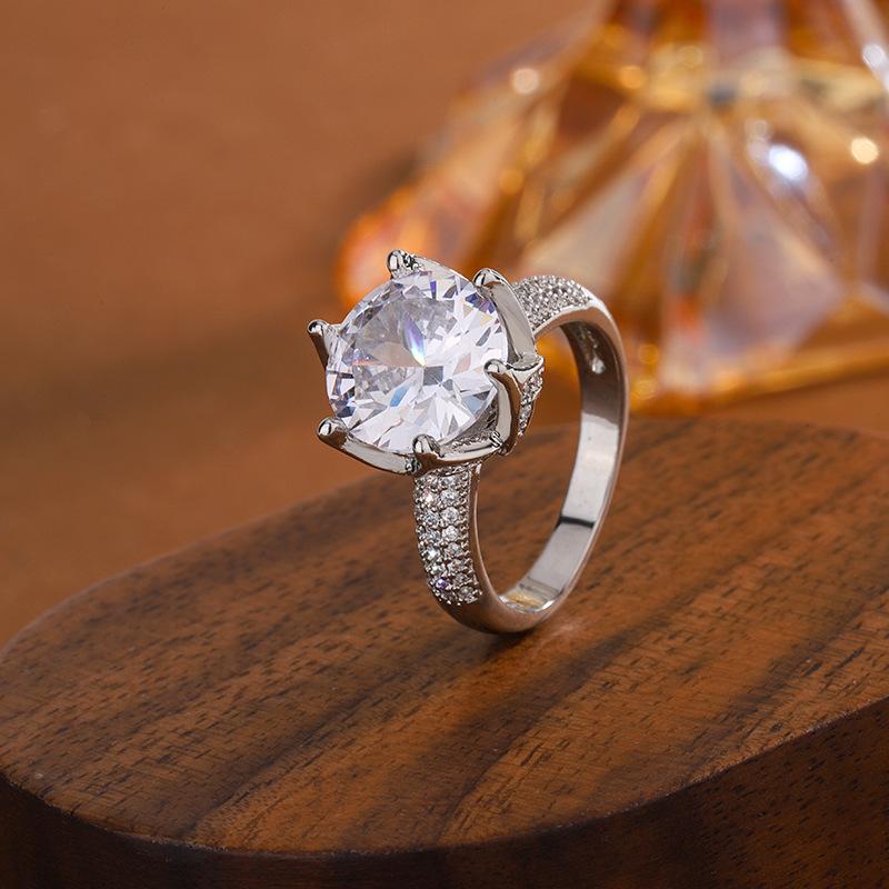 Anillo Popular de Kindergarten con Espejo Cruzado Clásico de Pétalo de Seis Garras Chapado en Oro Blanco Diamante Anillo de Mujer Joyería de Exportación de Lujo Europea y Americana para Mujer