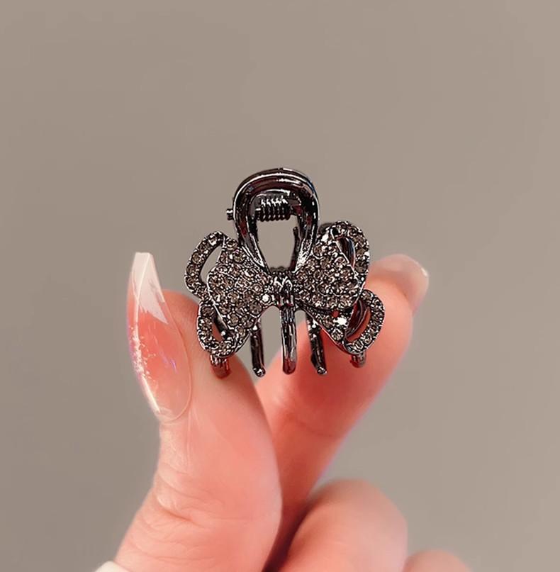Recién llegado, elegante horquilla con lazo para mujer, con diamantes de imitación, horquilla superior, horquilla para el pelo, horquilla de medio lazo, tocado, tamaño pequeño, pinza de tiburón