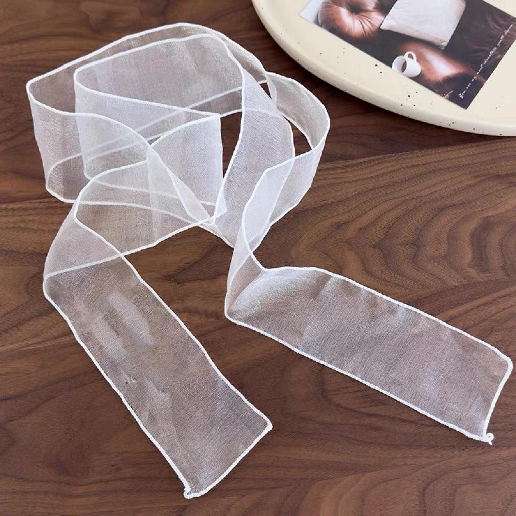 Bufanda de seda estilo coreano de alta gama, estilo retro, blanca, pura, para mujer, con lazo para el pelo, cinturón protector para el cuello, nueva bufanda de primavera y verano.