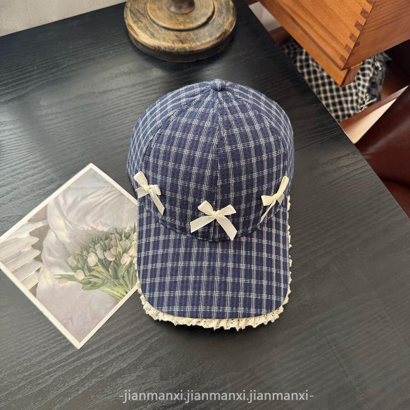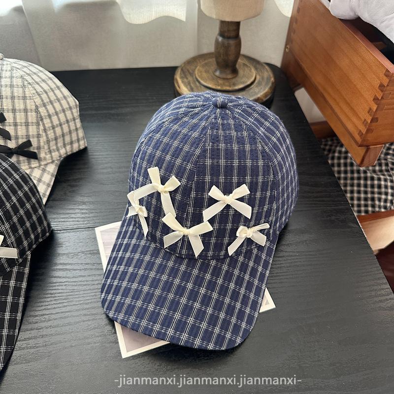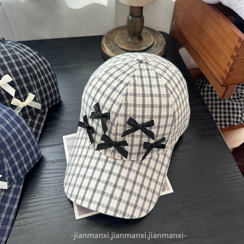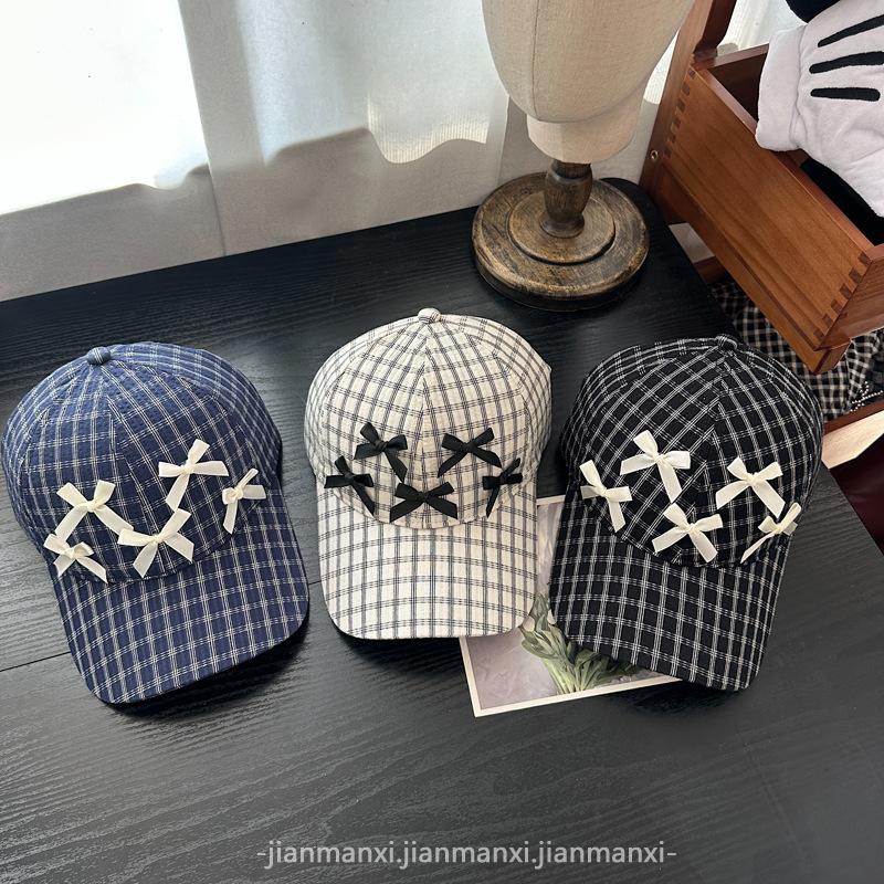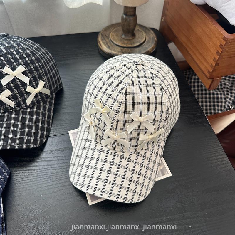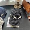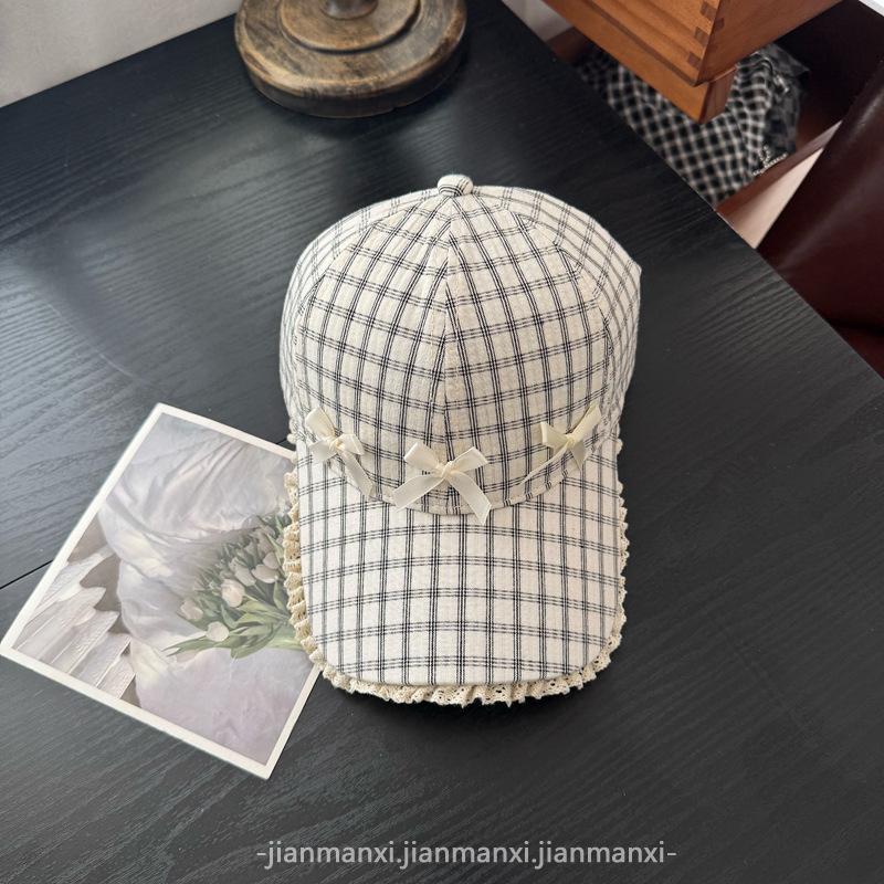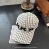 Gorra Dulce con Lazo Estilo Coreano Ins para Mujer Primavera y Verano Nueva Moda para Mujer Parasol a Cuadros Gorra de Béisbol Protector Solar