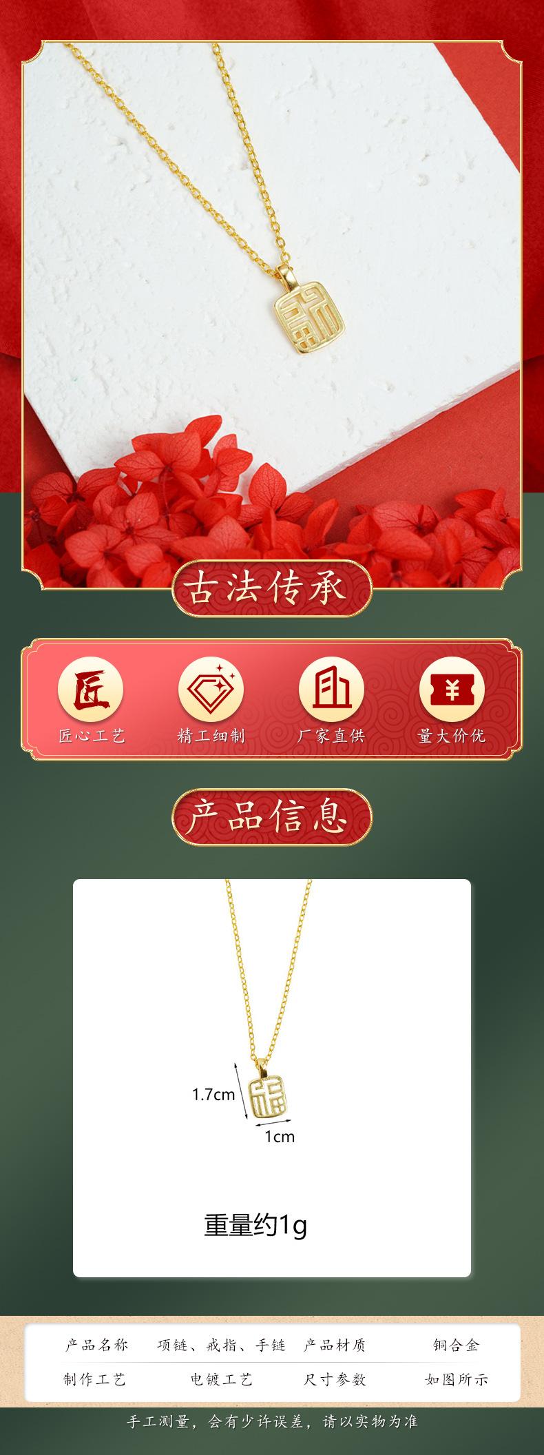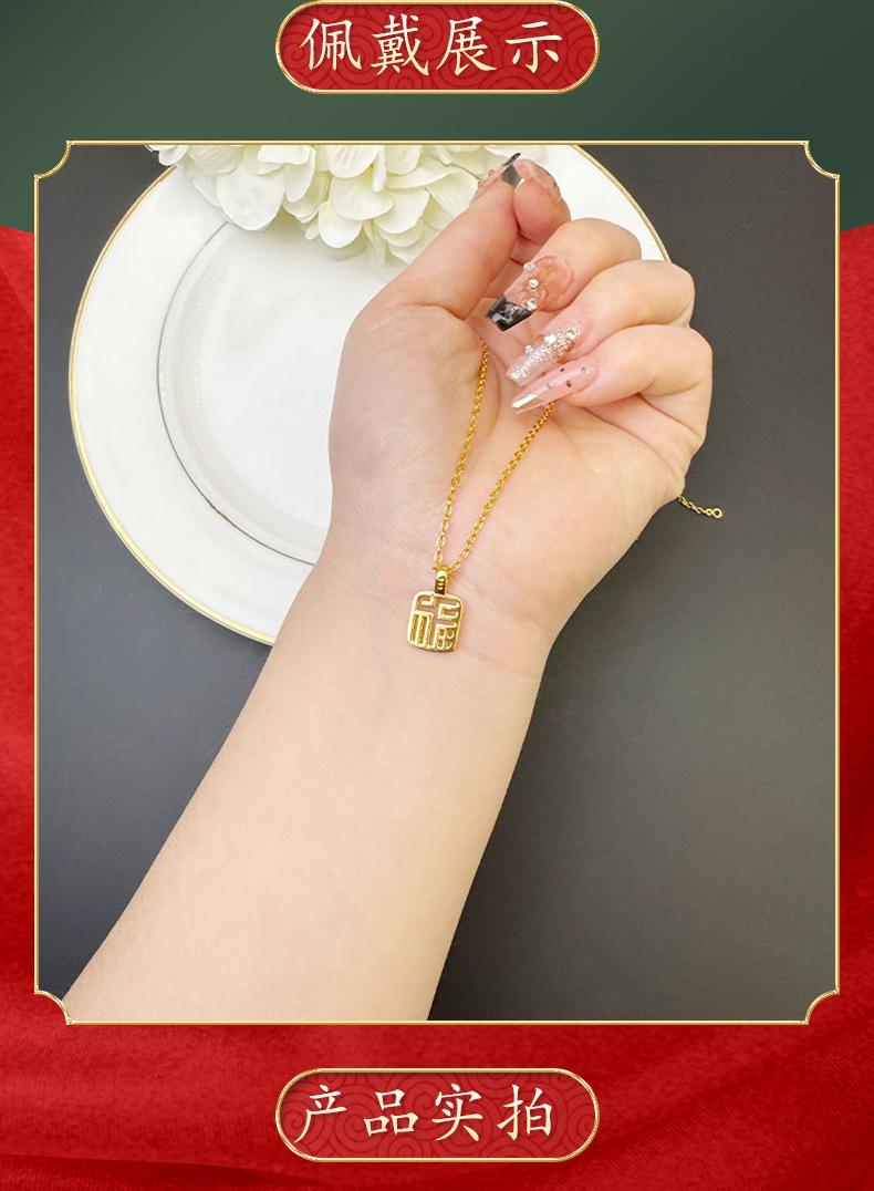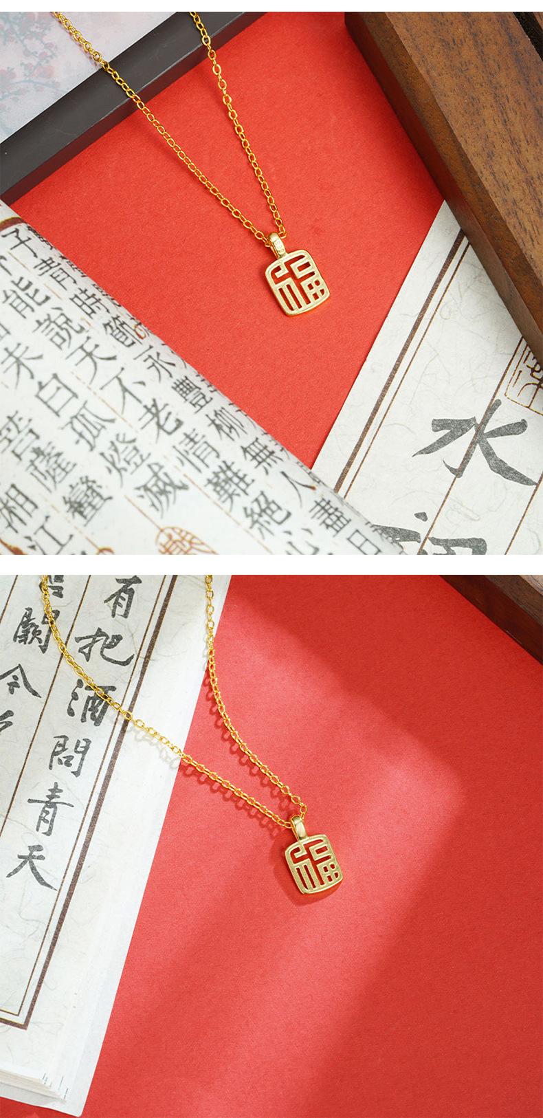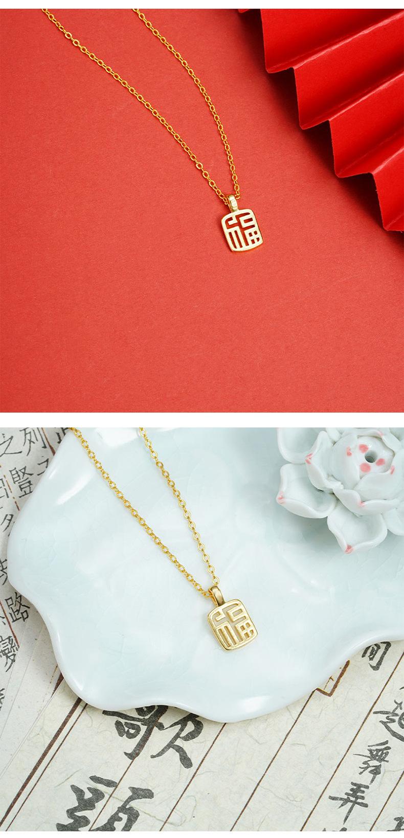 Colgante Vintage Vietnamita Chapado en Oro con Diseño Cuadrado Hueco, con el Carácter "Fu" para Mujeres, Suministro de Accesorio Simple y Duradero