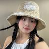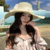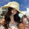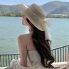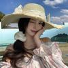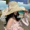Sombrero de Paja con Encaje Estilo Francés Lazo de Perlas para Mujer Ala Ancha Verano Protección Solar Sombrero para Vacaciones en la Playa