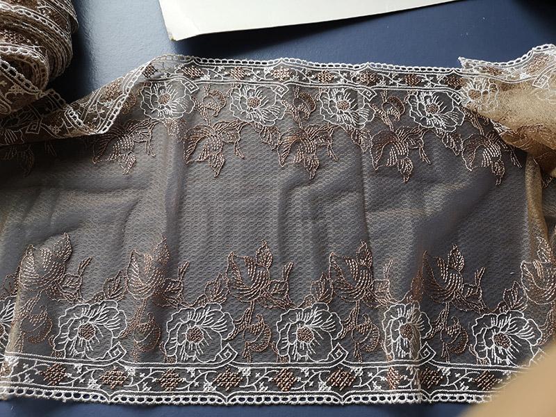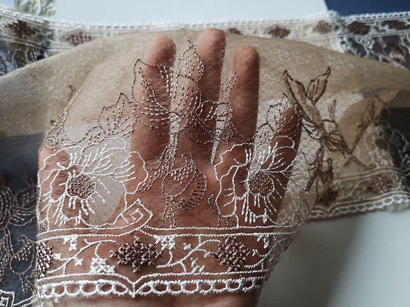 2.5m Marrón Claro Blanco Malla Doble Cara Encaje Bordado Ropa Hecho a Mano Decorativo Falda Accesorios DIY Super Encaje