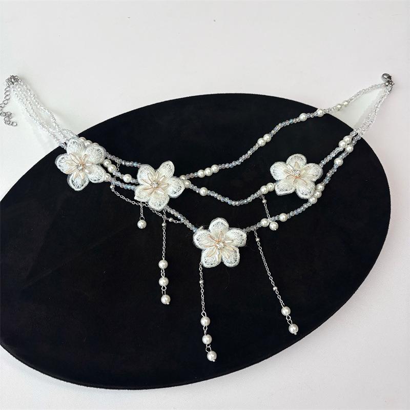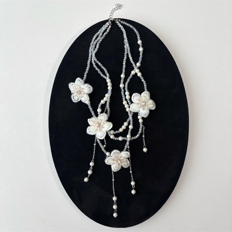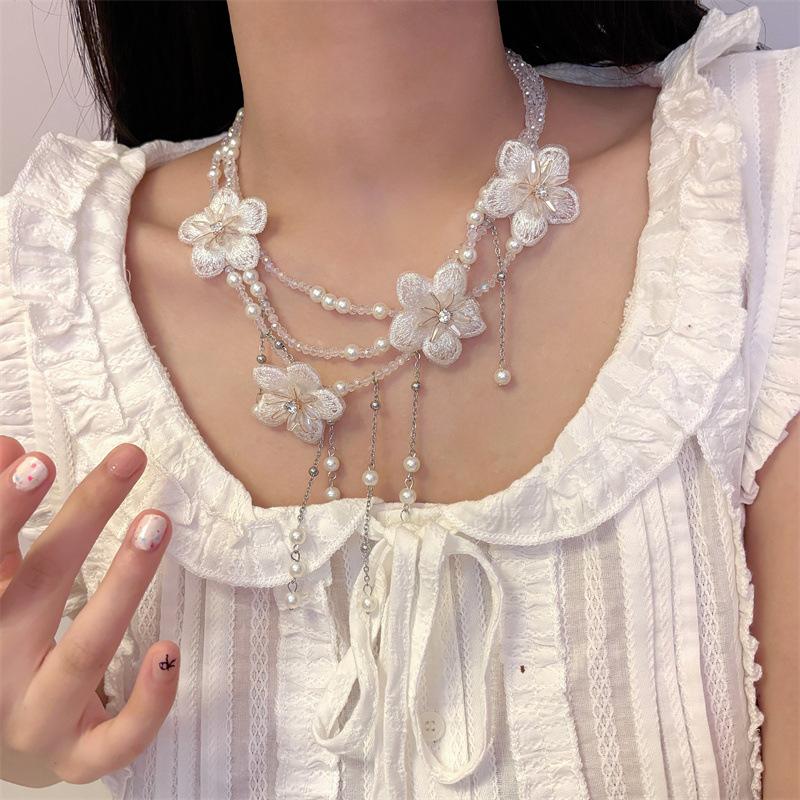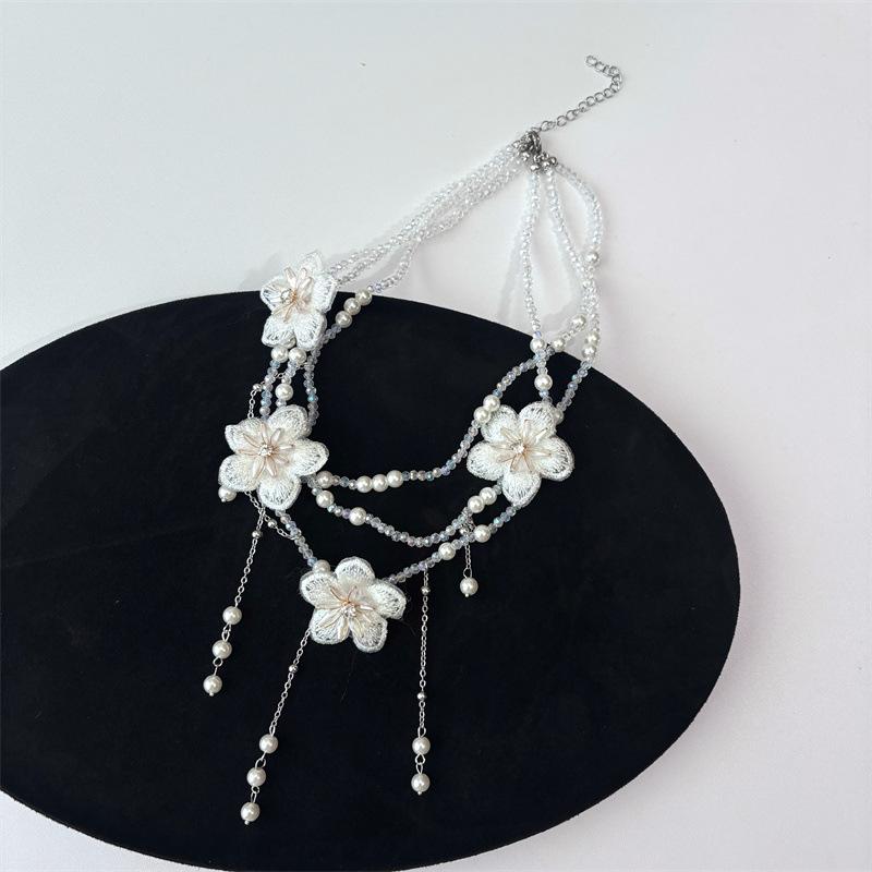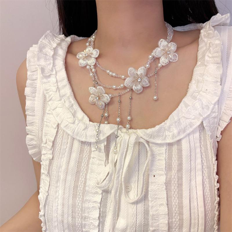 Collar Gargantilla de Borla de Cristal de Perla de Flor para Mujer Diseño Nicho de Lujo Ligero Accesorios de Collar Nueva Moda