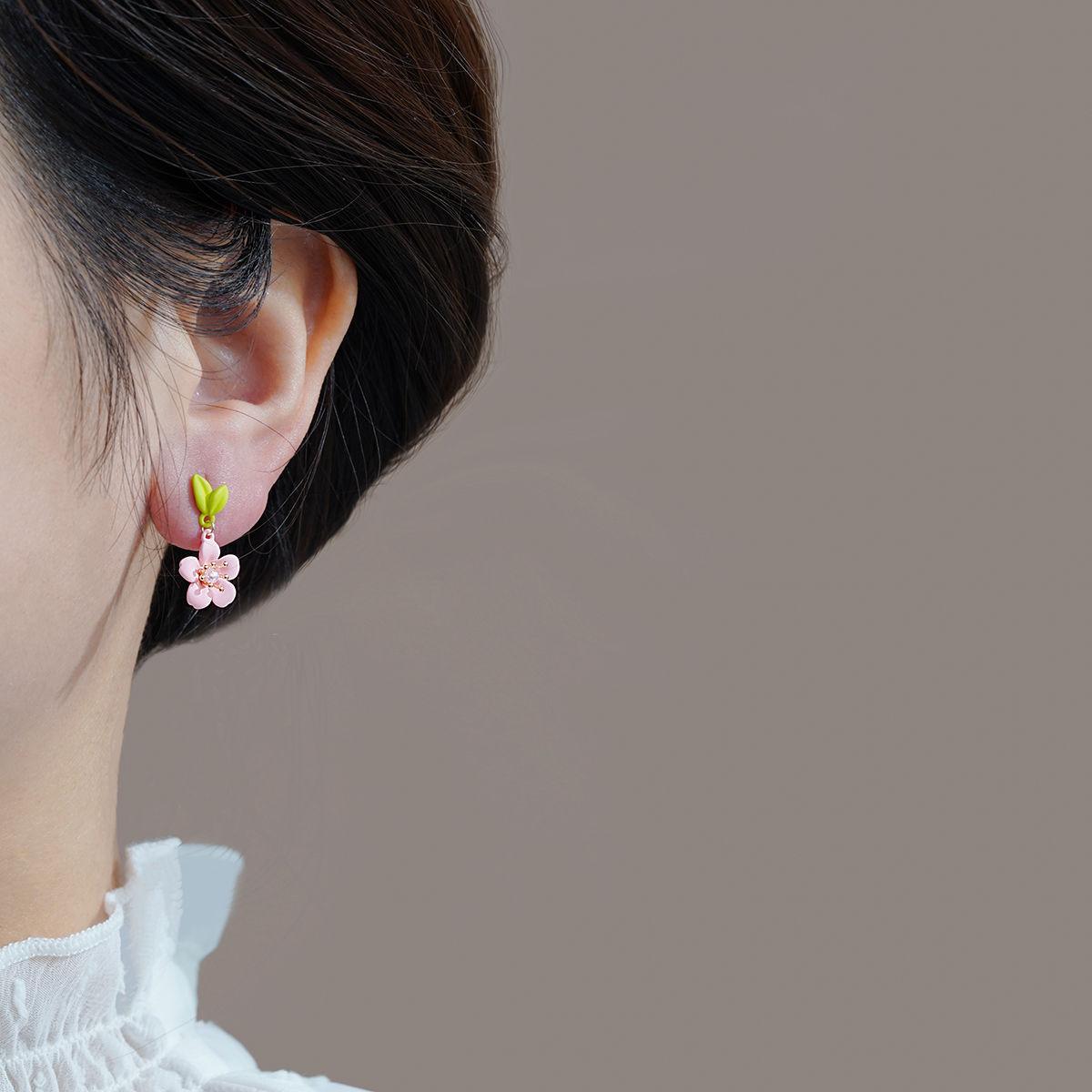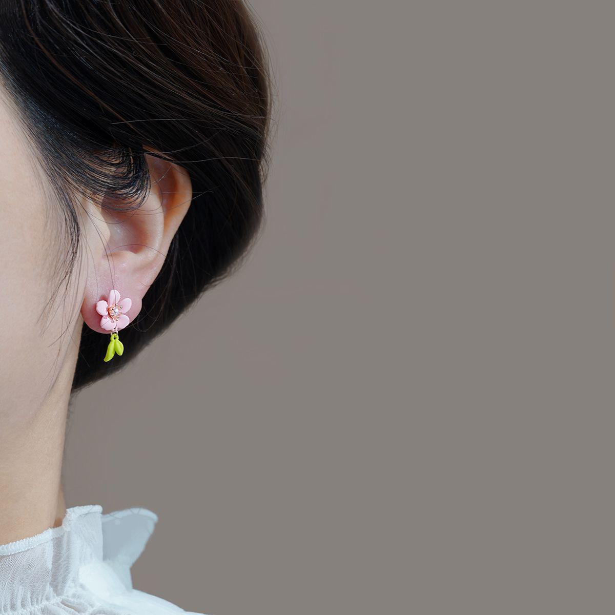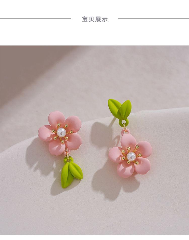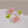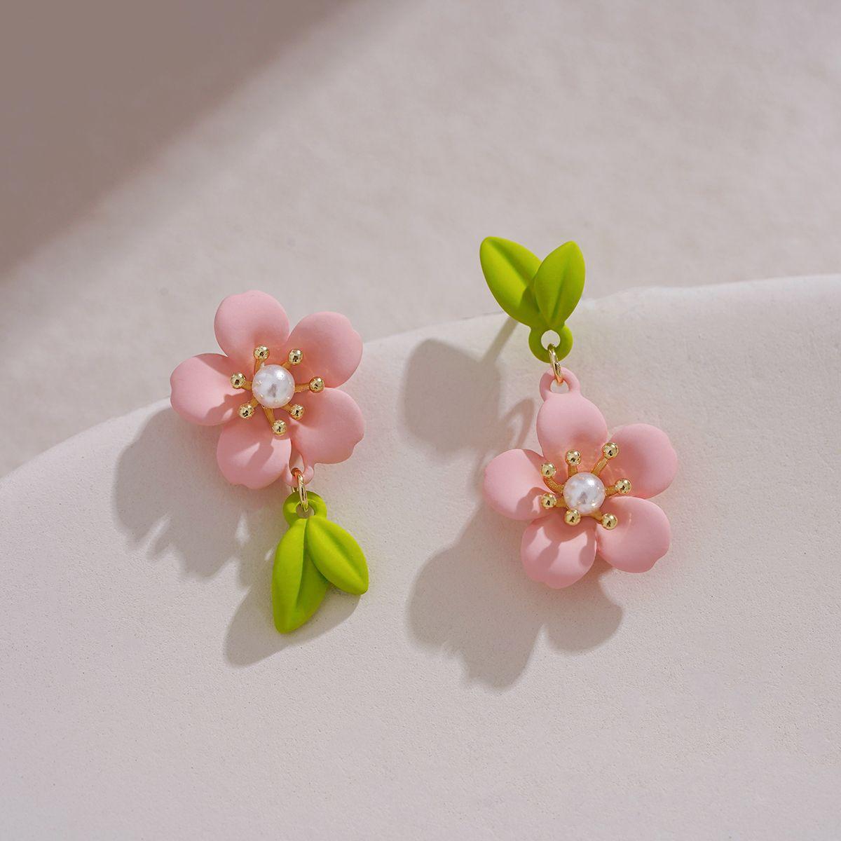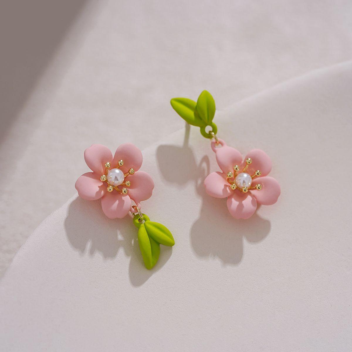 Compra Clip para Oreja de Flor Rosa Diseño Nicho Pendientes Asimétricos 2025 Nuevo Pendientes Pequeños Frescos de Hoja Verde al por mayor en Joom.pro