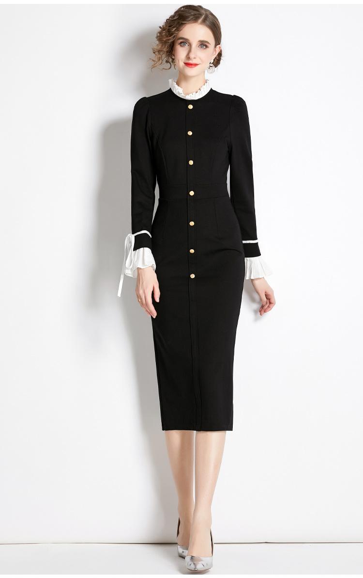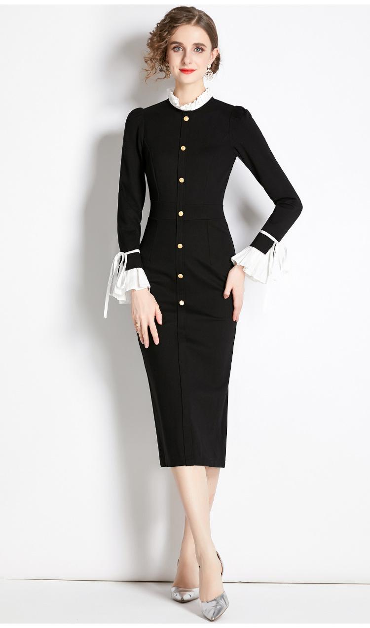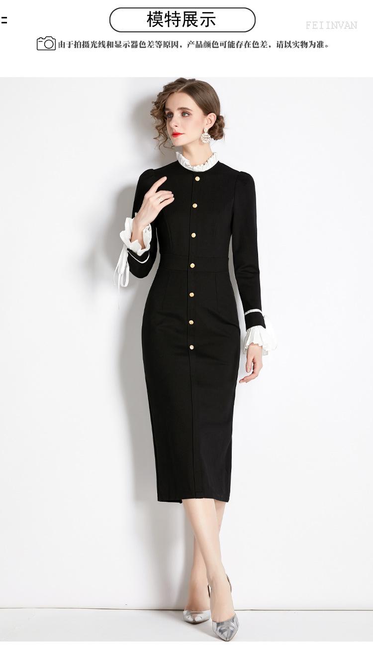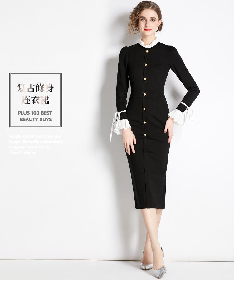 Vestido negro estilo Hepburn retro francés, de corte alto, con efecto perfumado y efecto estilizador, ideal para otoño e invierno.
