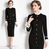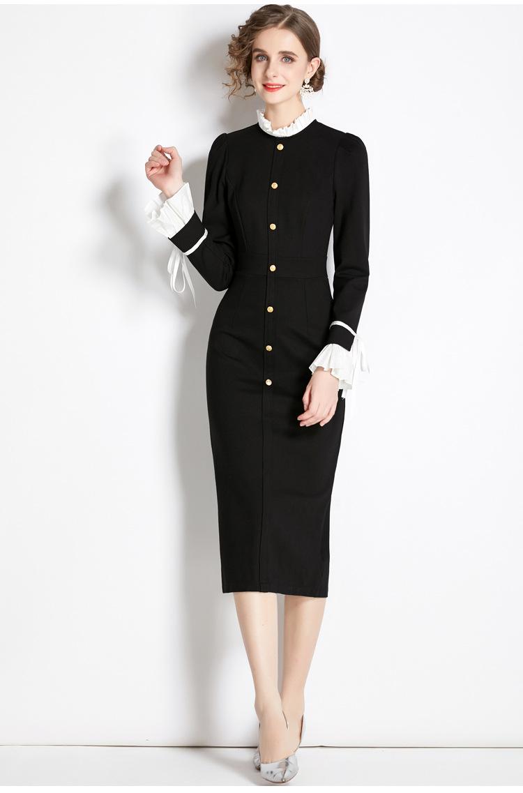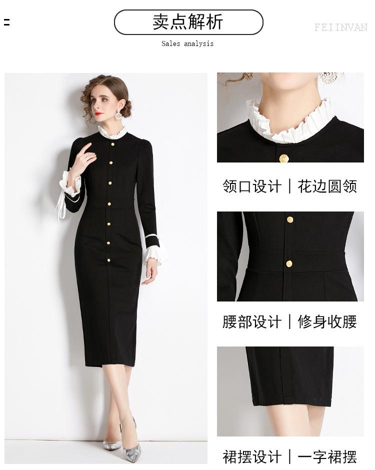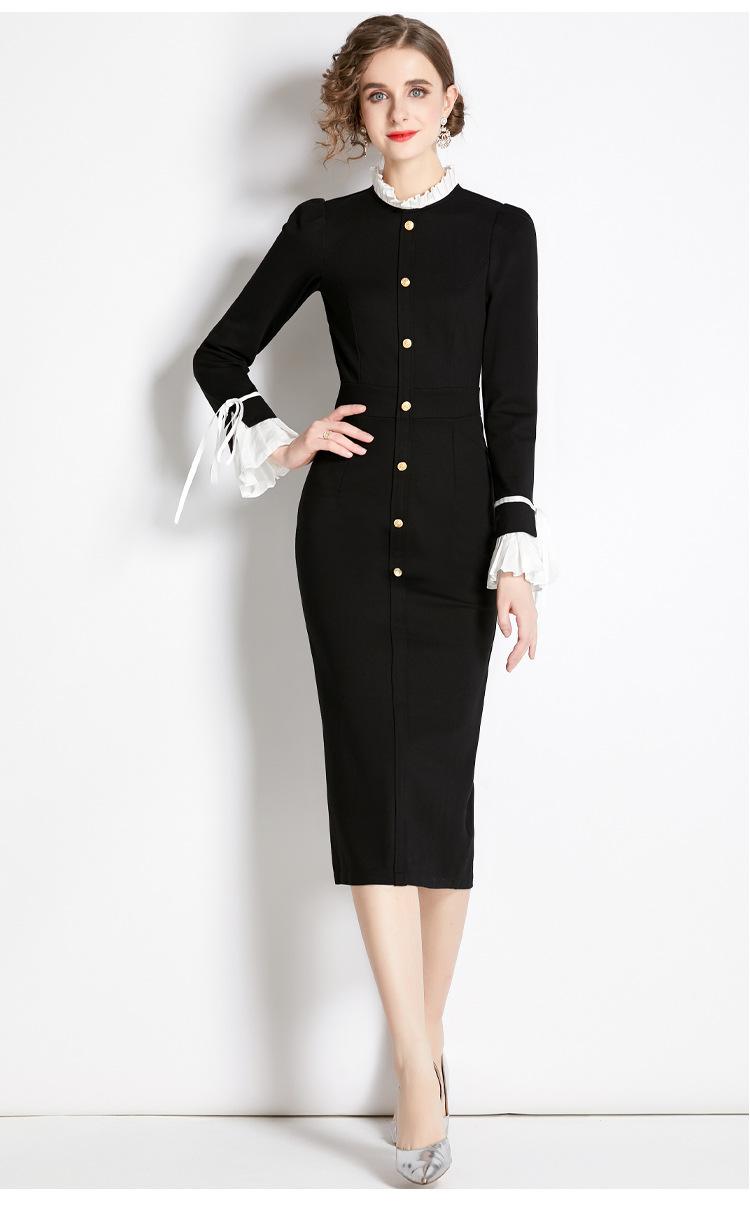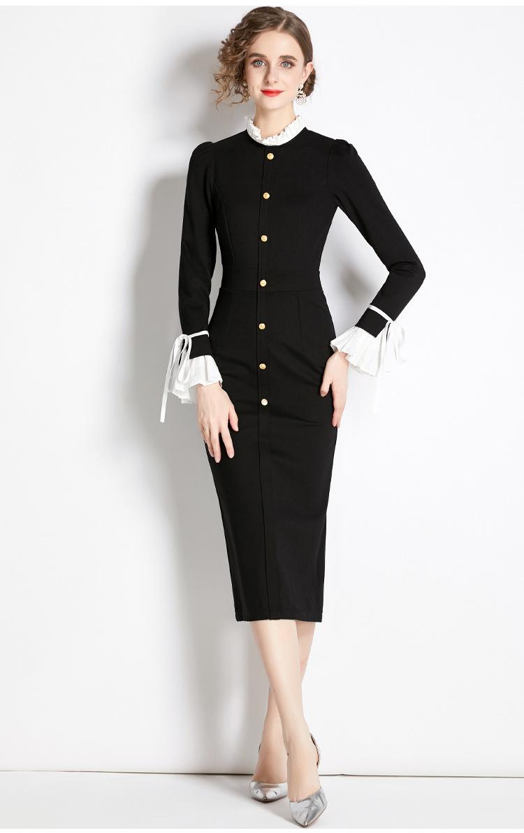 Vestido negro estilo Hepburn retro francés, de corte alto, con efecto perfumado y efecto estilizador, ideal para otoño e invierno.