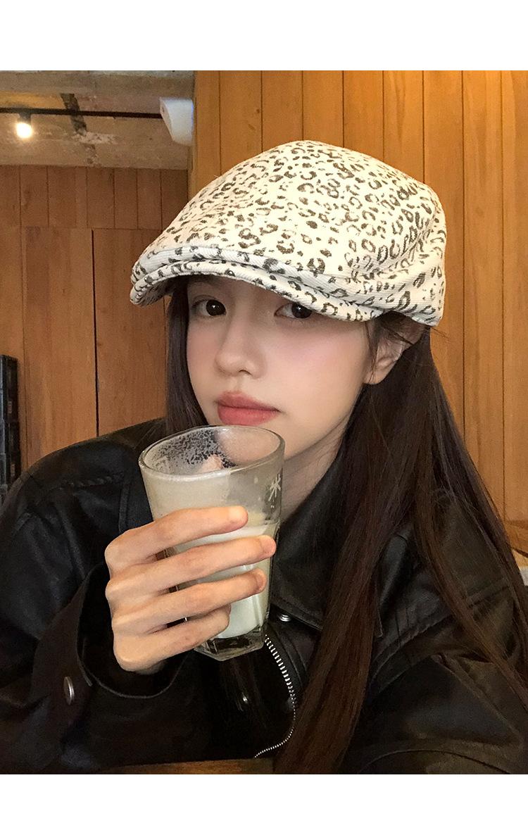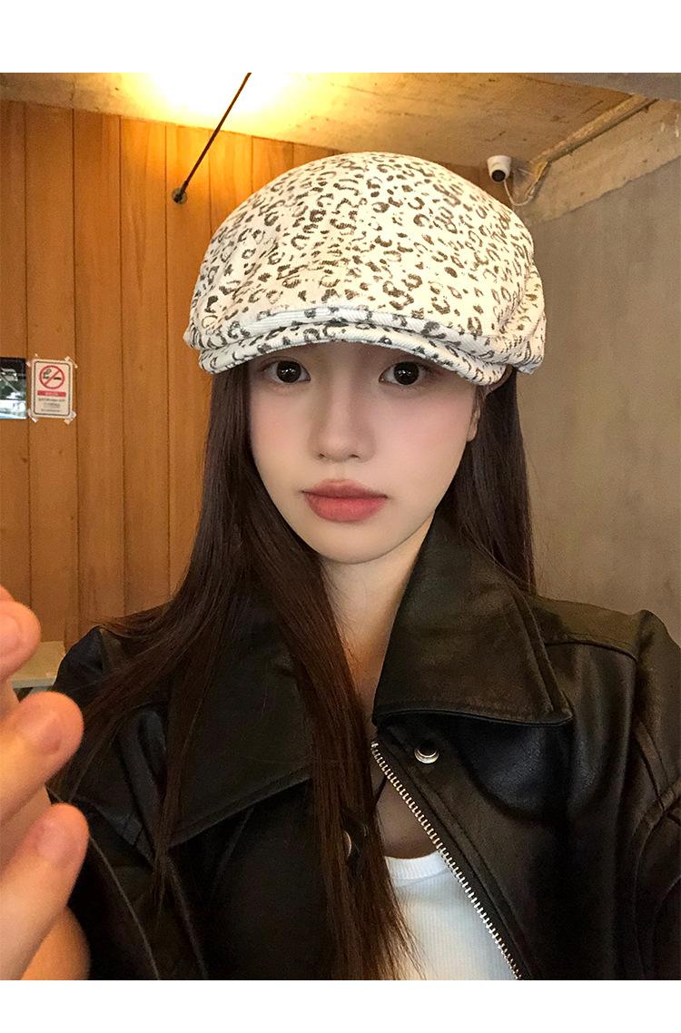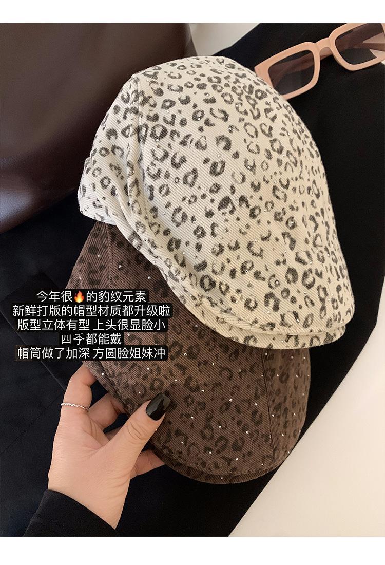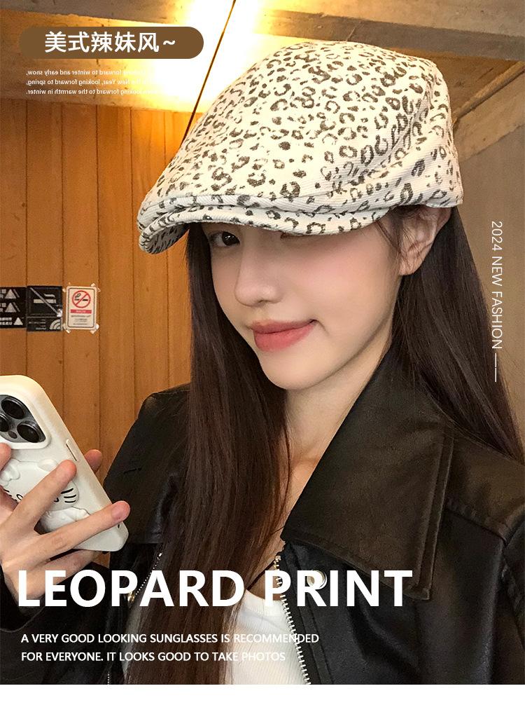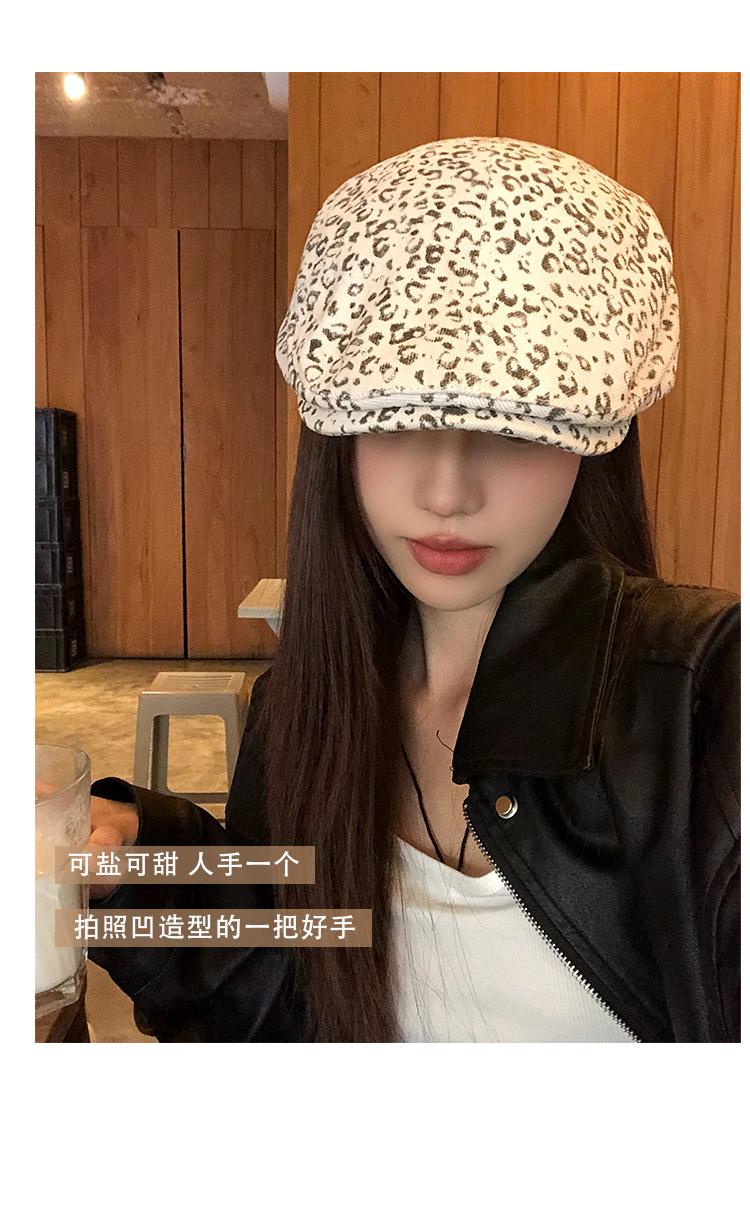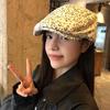 Sombrero con estampado de leopardo estilo americano retro para chica sexy, boina pequeña combinable con todo, con lengüeta de pato, para mujer, primavera, nuevo