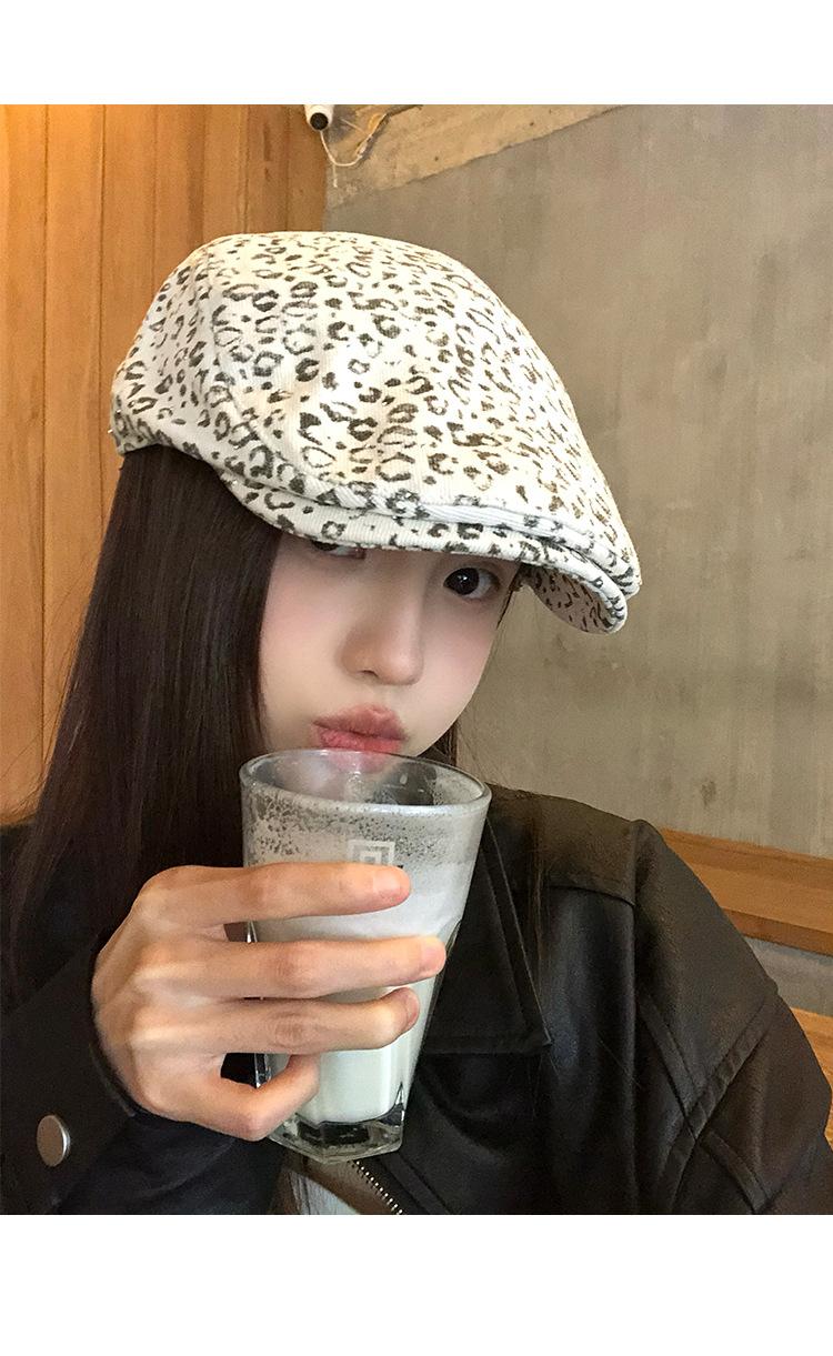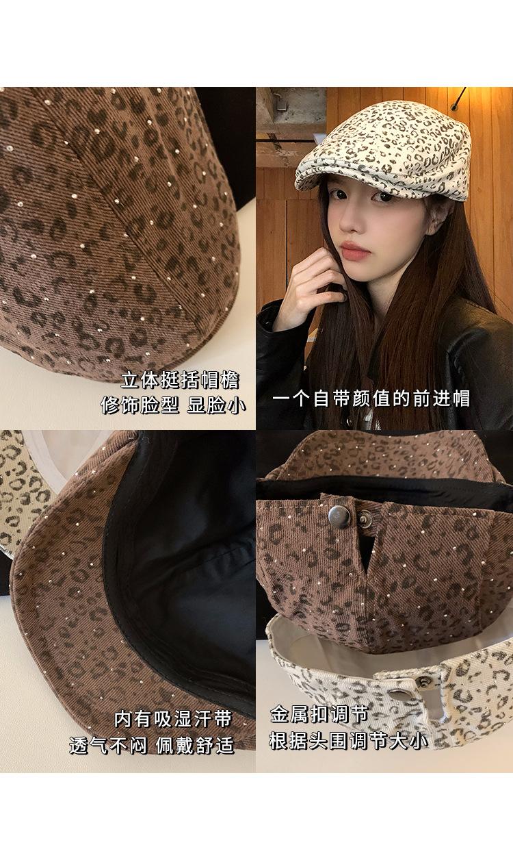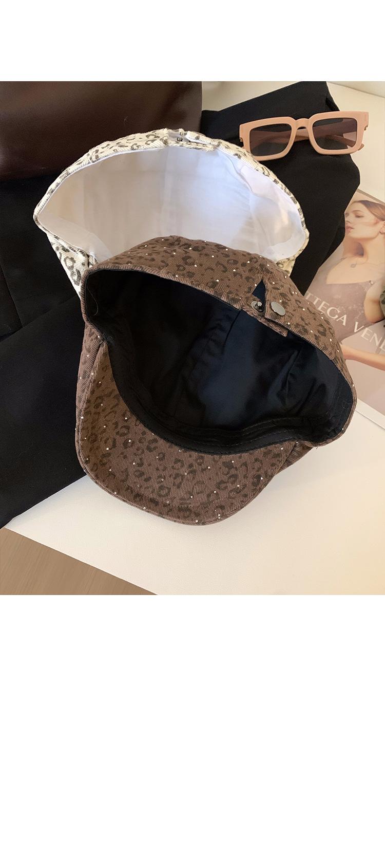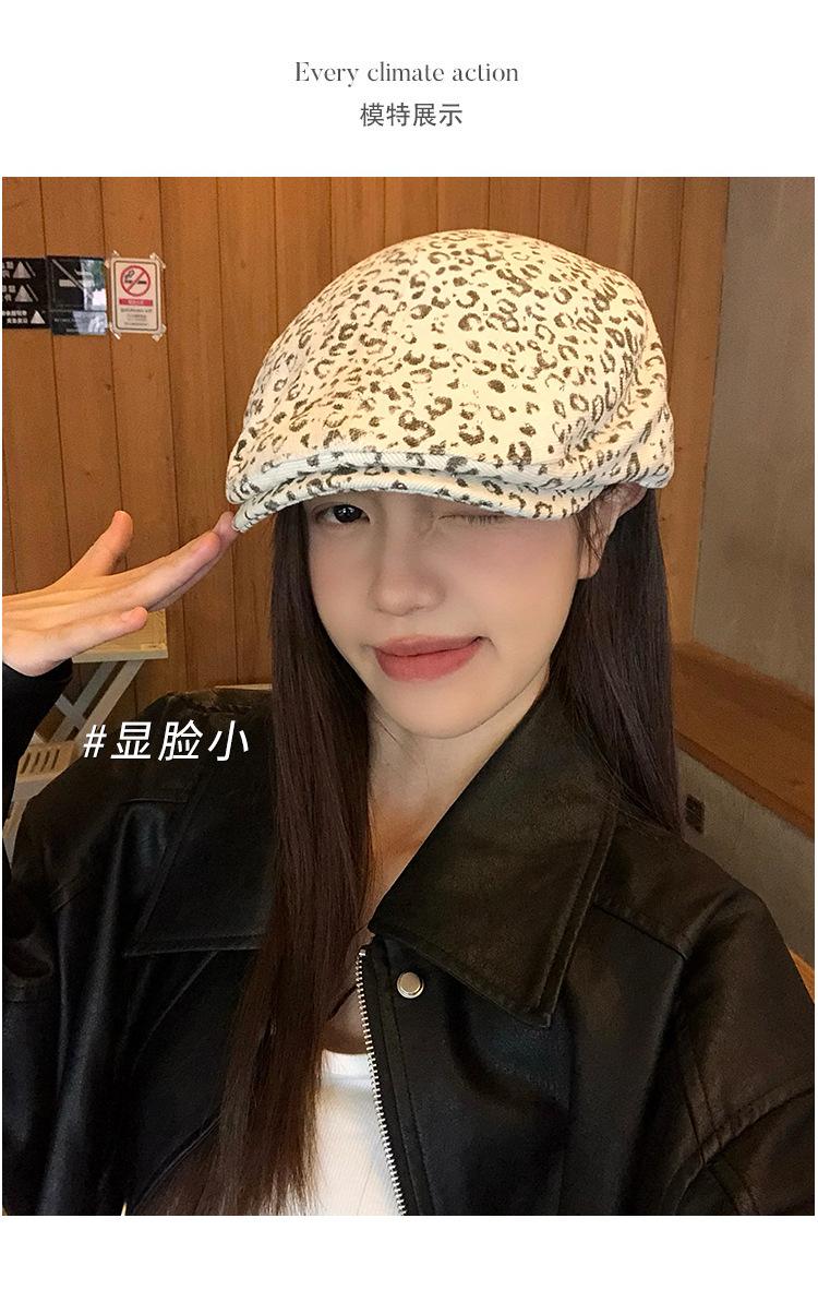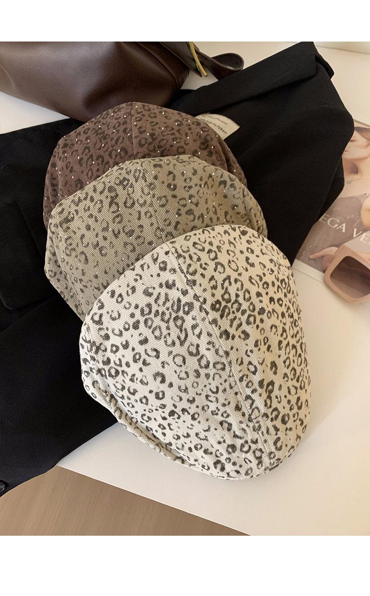Sombrero con estampado de leopardo estilo americano retro para chica sexy, boina pequeña combinable con todo, con lengüeta de pato, para mujer, primavera, nuevo