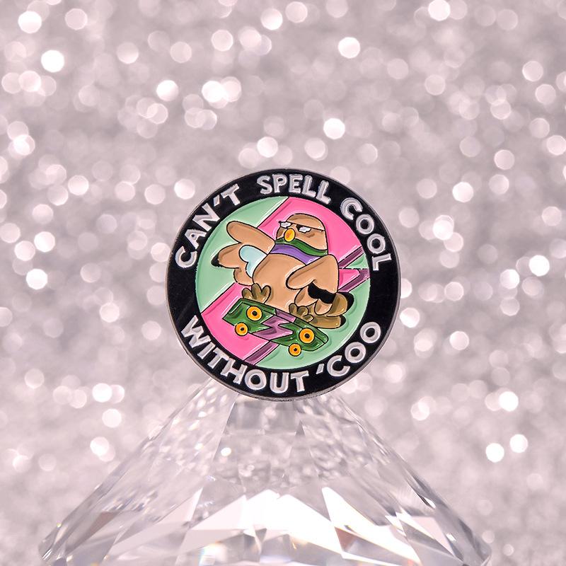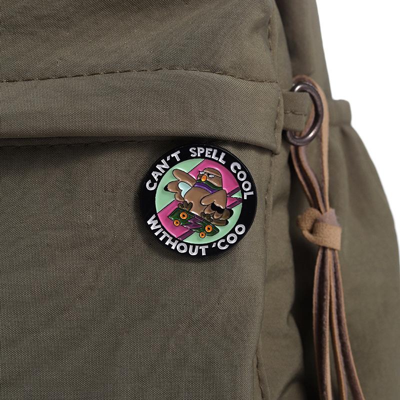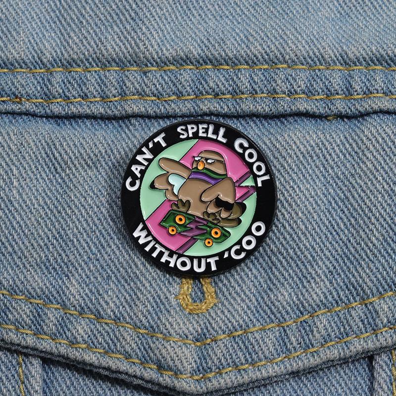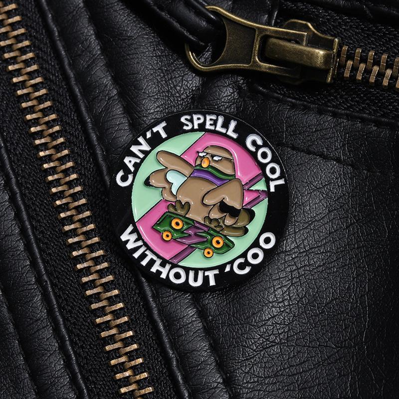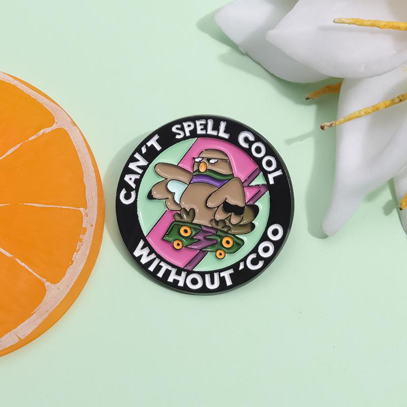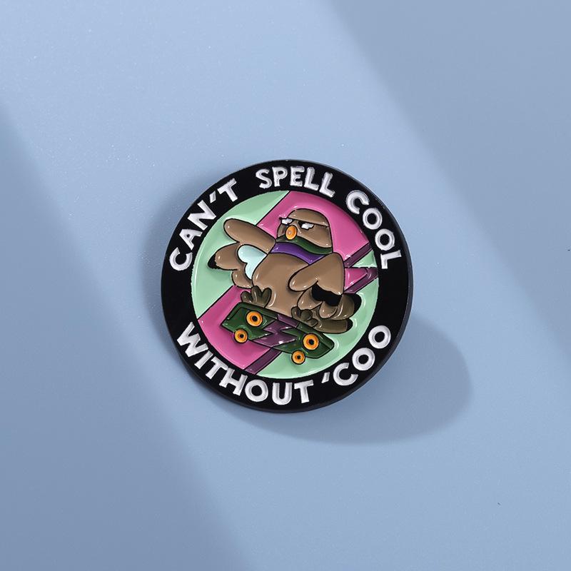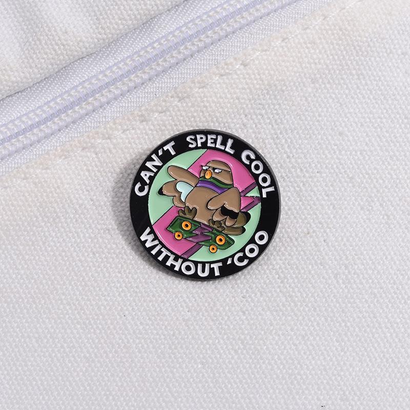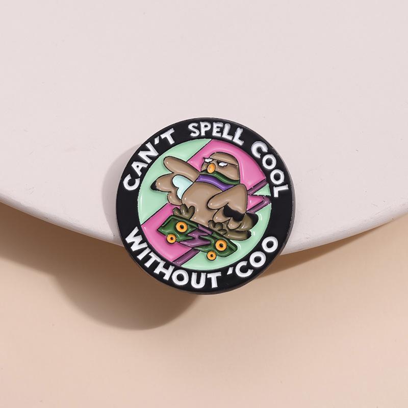 Nueva y divertida insignia redonda transfronteriza personalizada con exquisitas letras en inglés, broche de animal pequeño, abrigo, bufanda fija con hebilla