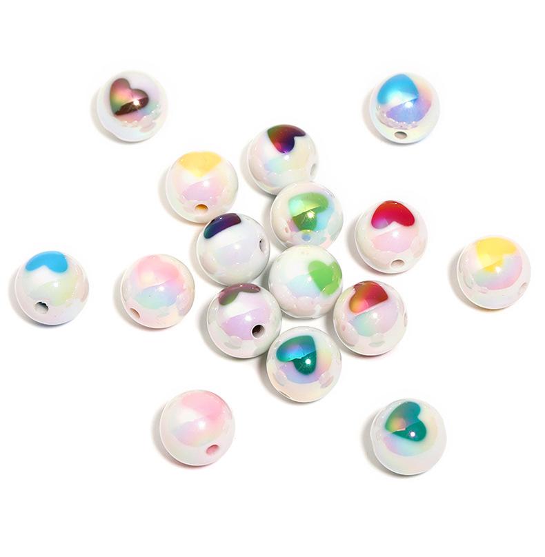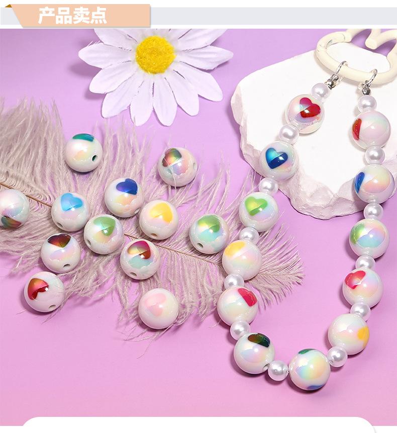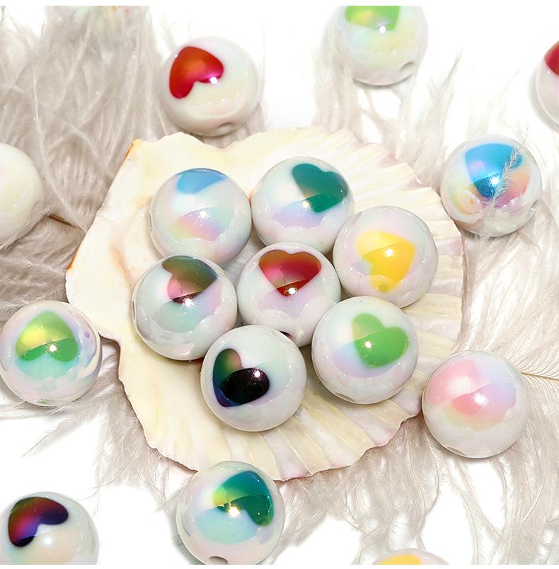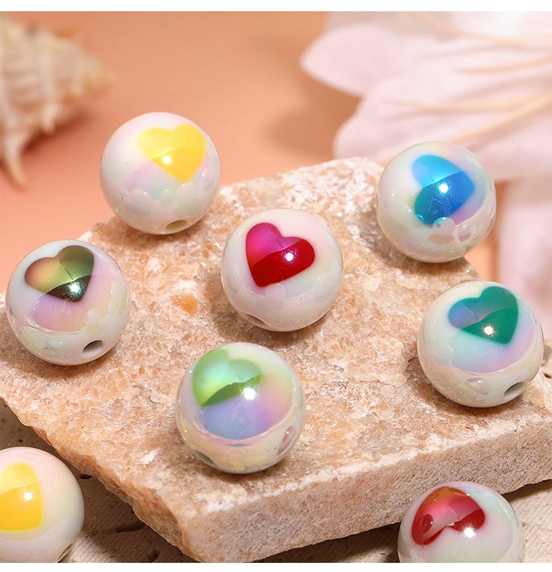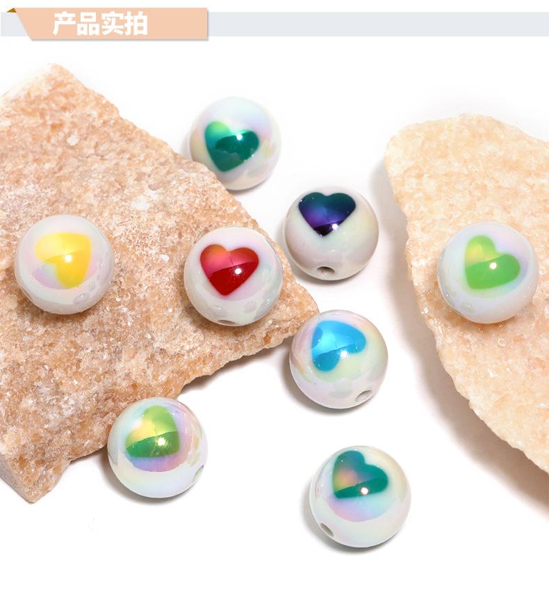 Nuevas Cuentas Sueltas de Acrílico Transfronterizas Coloridas Corazón Cuentas Redondas Hechas a Mano DIY Abalorios Pulsera de Moda Accesorios de Joyería