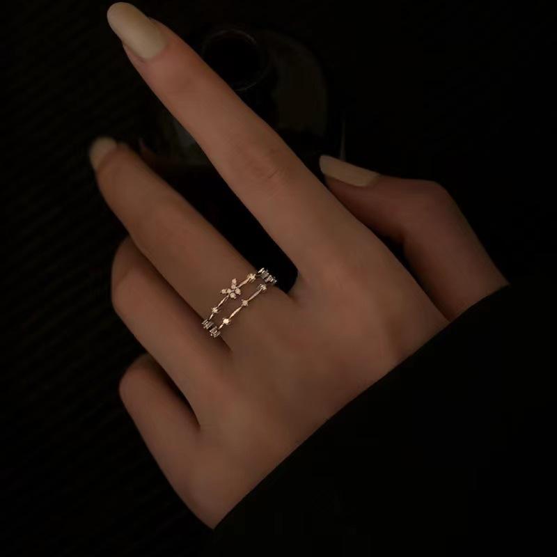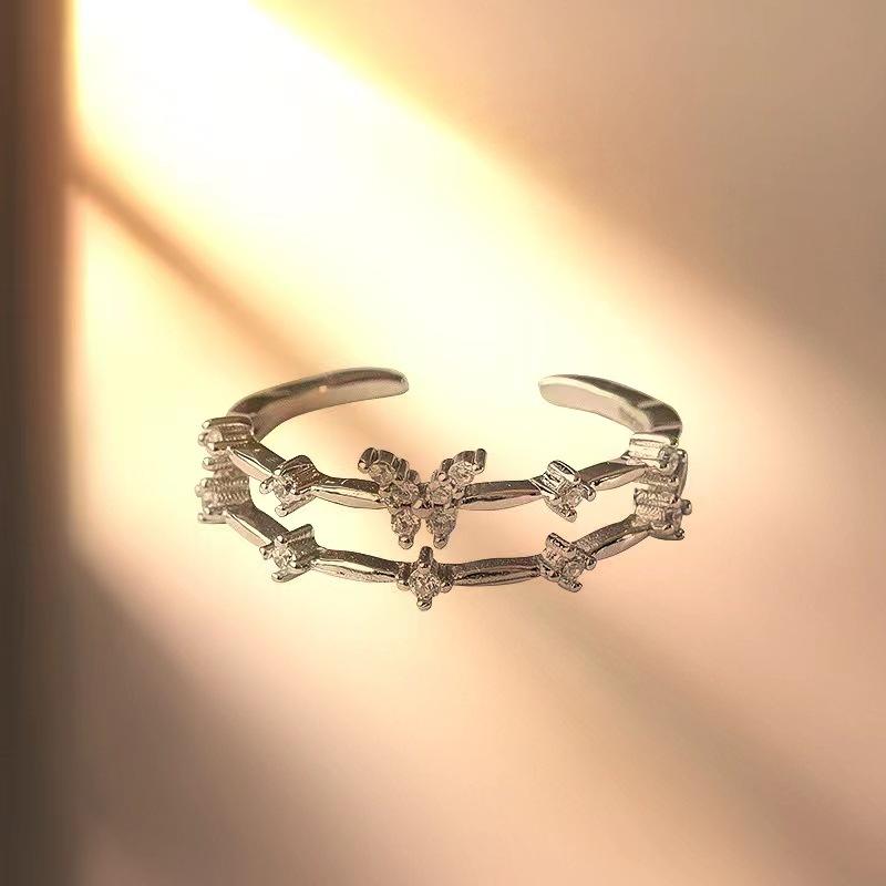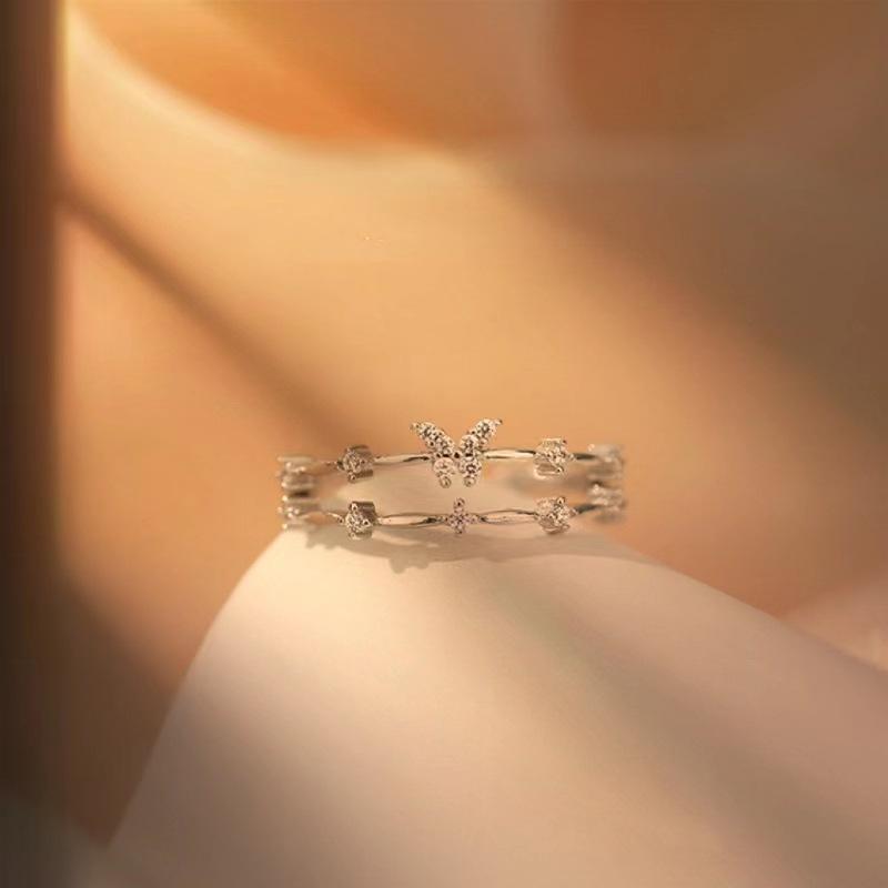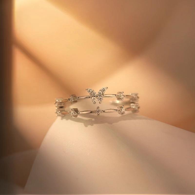 Anillo de Mariposa de Doble Capa de Plata Pura para Mujer, Diseño Nicho de Lujo Ligero, Anillo Abierto Minimalista de Moda, Estilo Cool