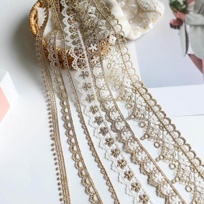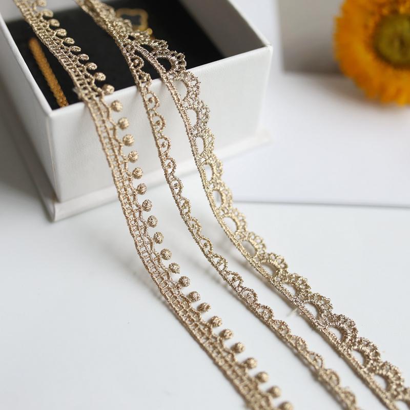 Una variedad de prendas decorativas de encaje bordado en oro hechas a mano, cuello, puños, borlas, pestañas, accesorios lolita