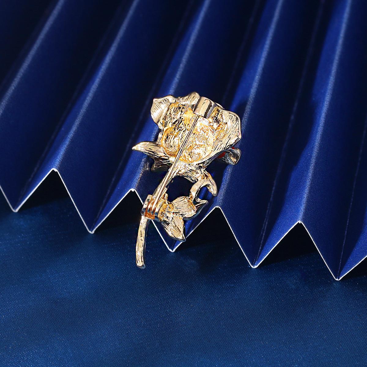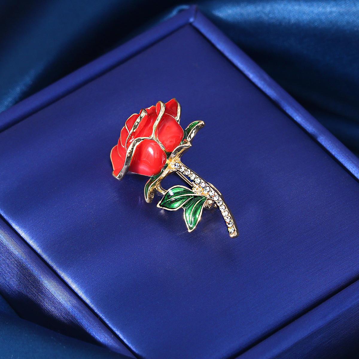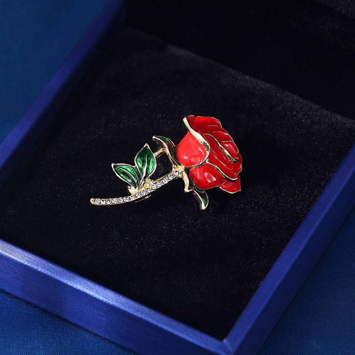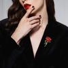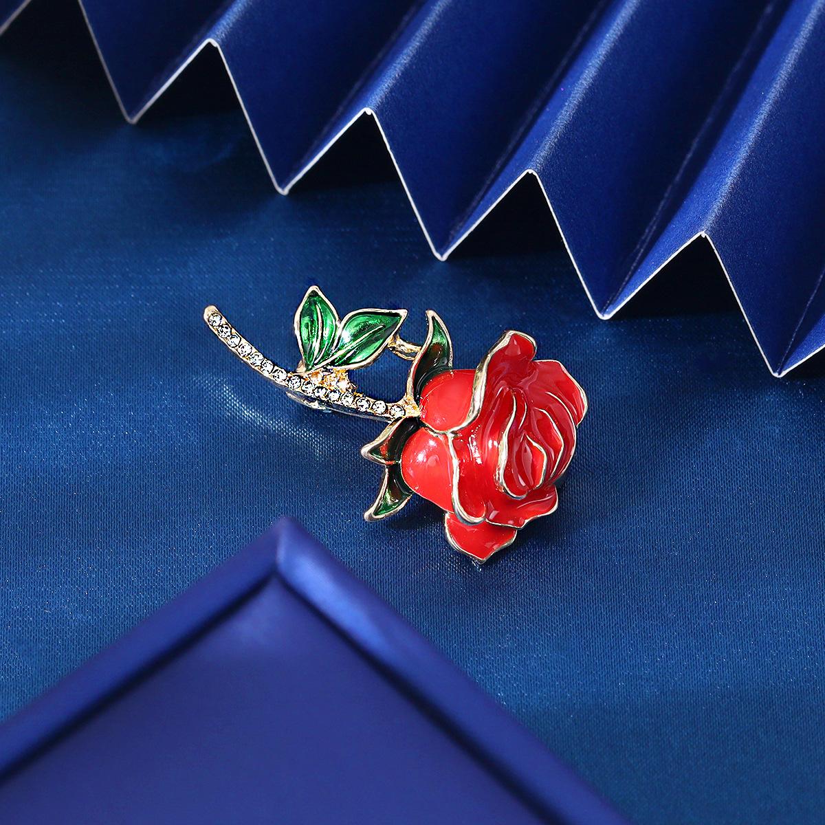Nuevo Broche de Flor Rosa Retro Rojo de Alta Gama Antideslumbrante Broche de Flor Europeo y Americano Incrustado de Diamantes Exquisito Broche para Damas