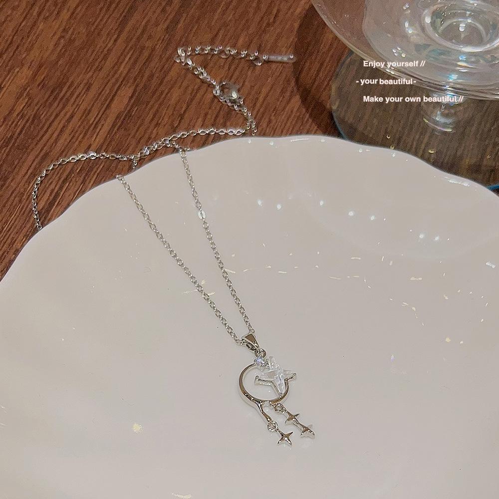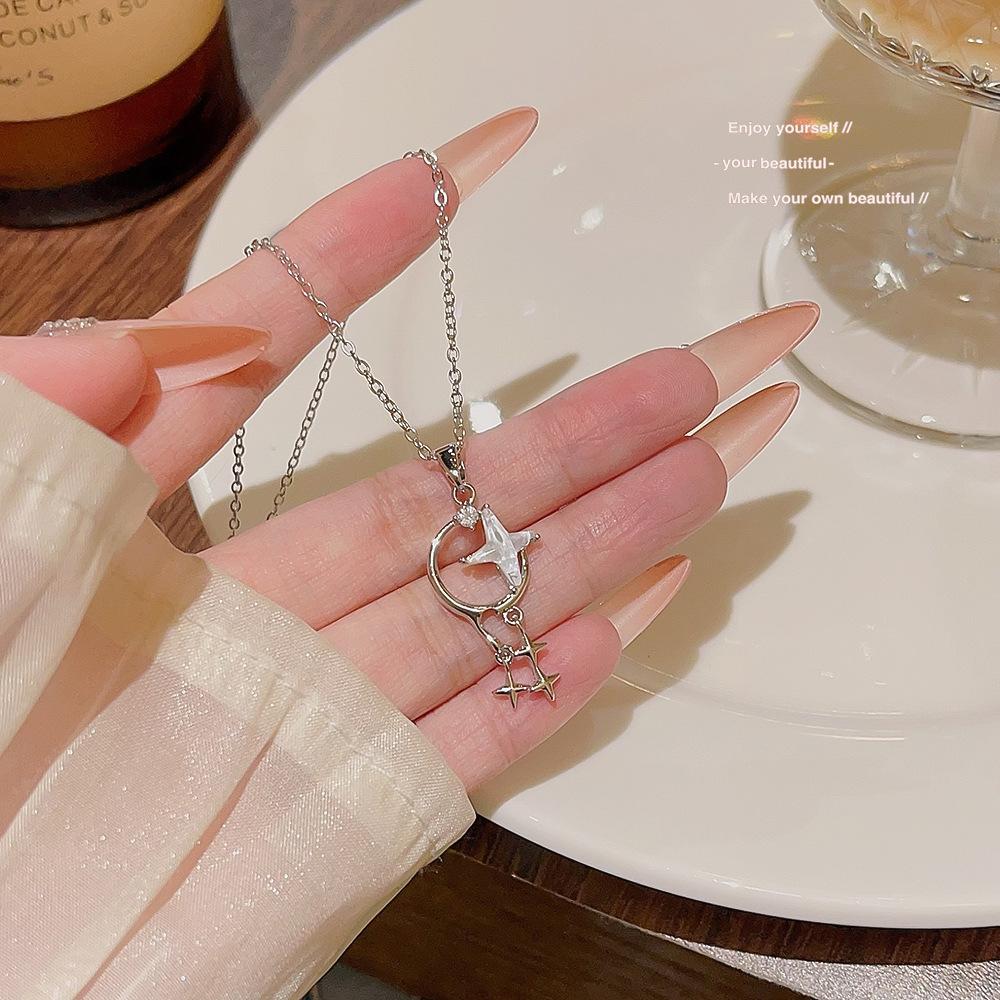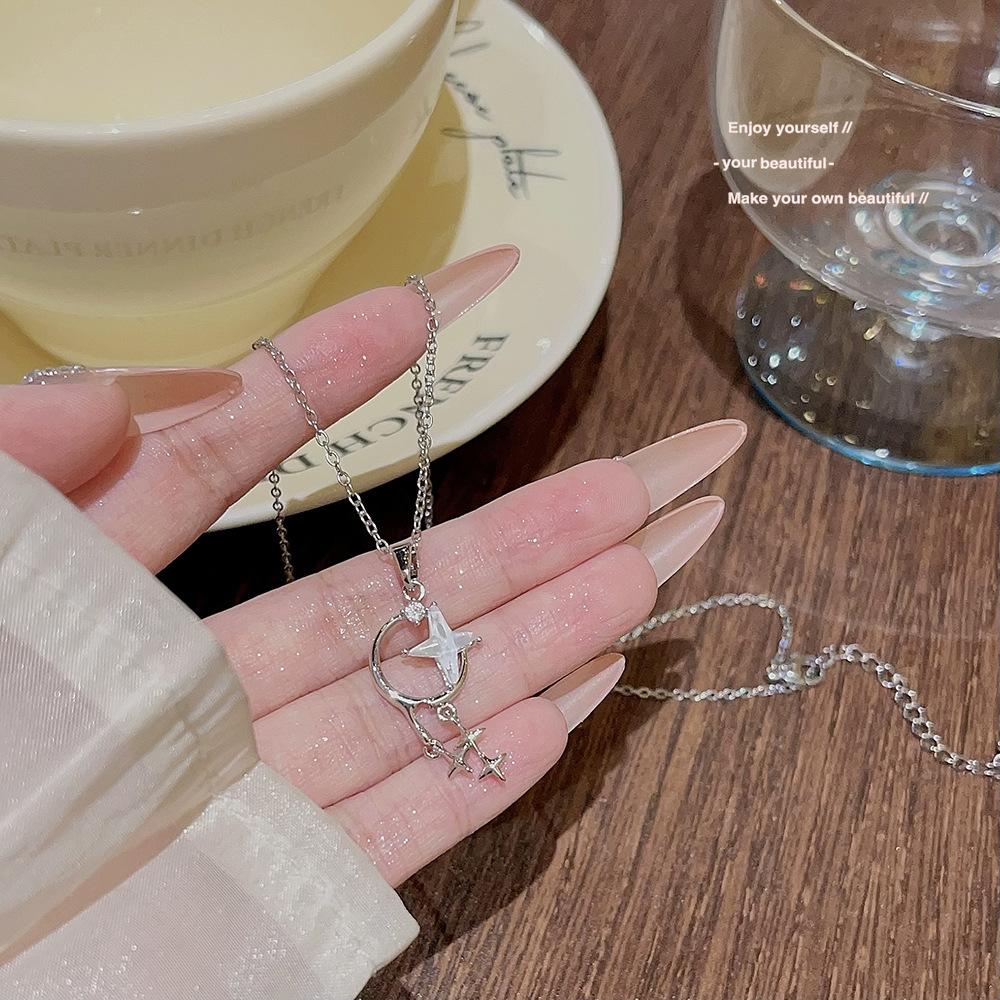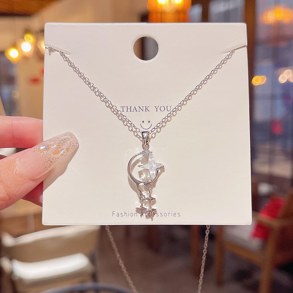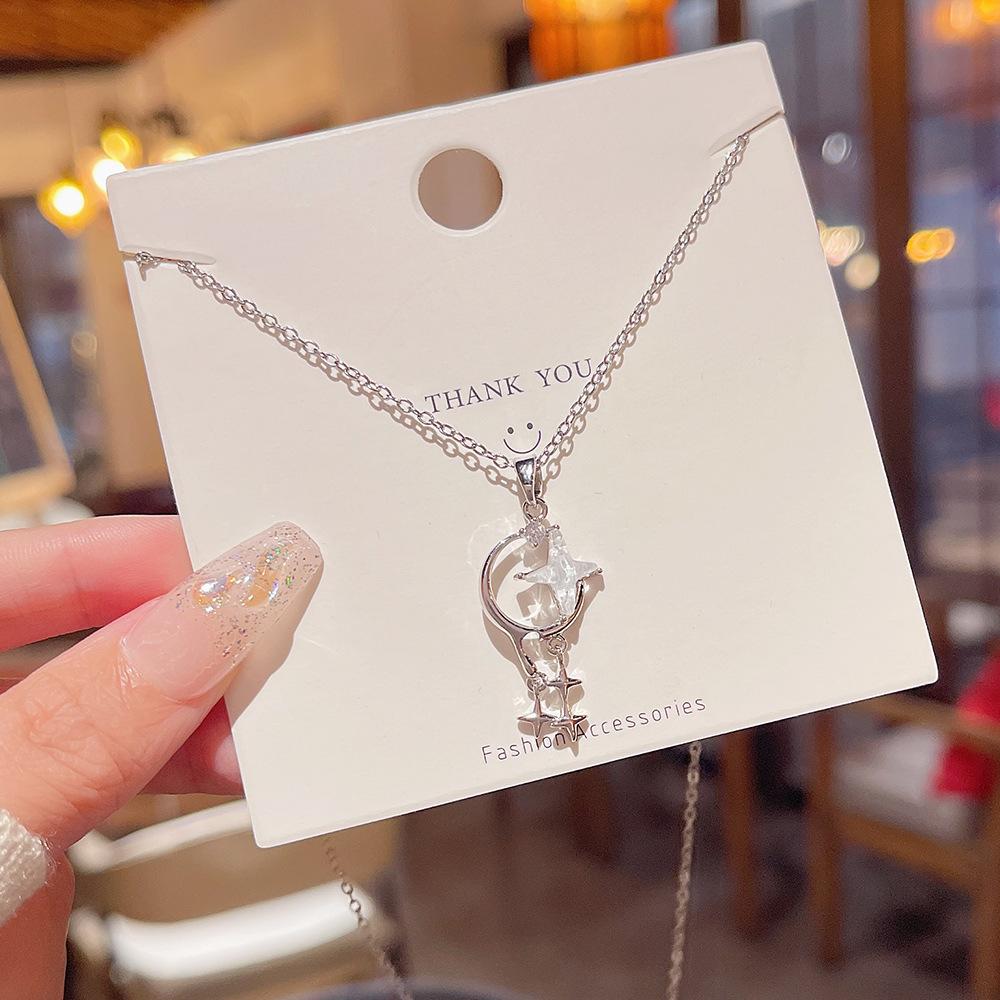 Collar ligero de lujo con forma de meteorito lunar, pequeño colgante de circonita dulce y fresca, diseño de nicho, cadena de clavícula que combina con todo.