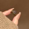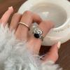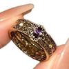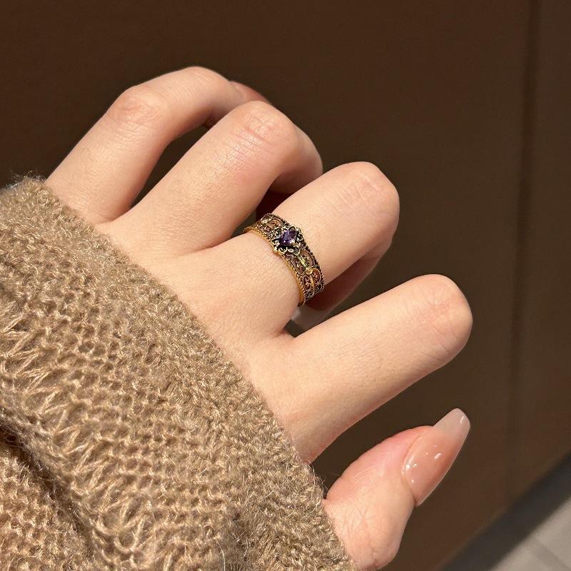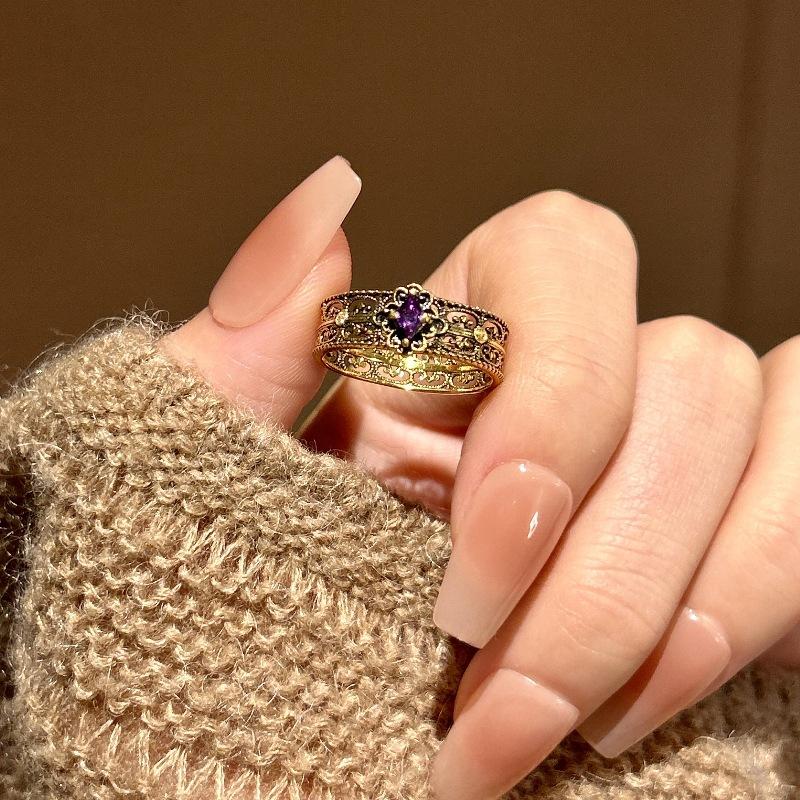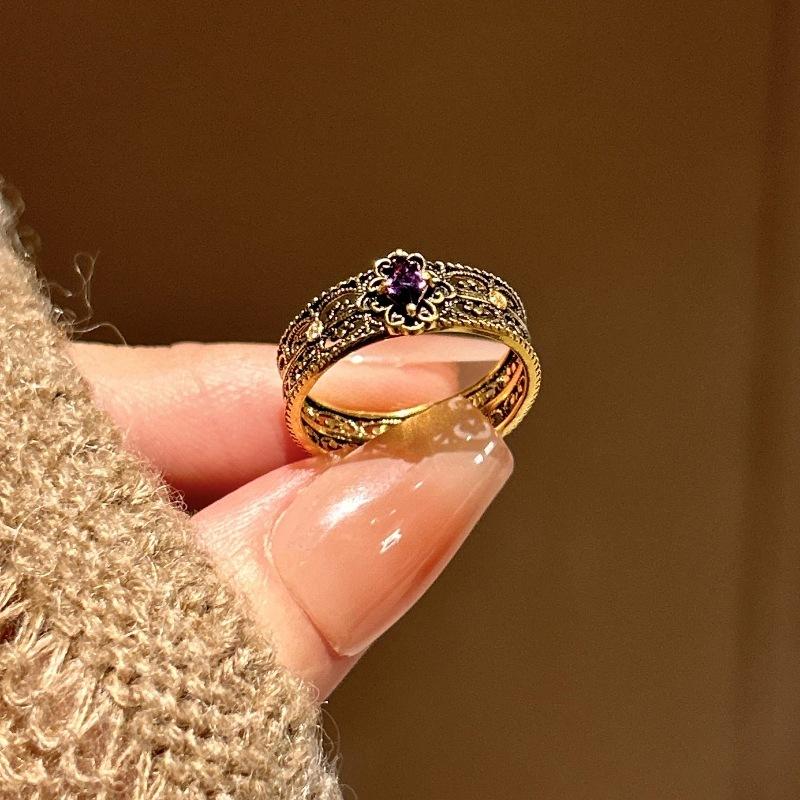 Anillo Geométrico Calado Retro Oro Negro Filigold Diamante Púrpura Diseño de Moda Nicho Sentido del Temperamento Estilo Dulce Cool Anillo Medieval