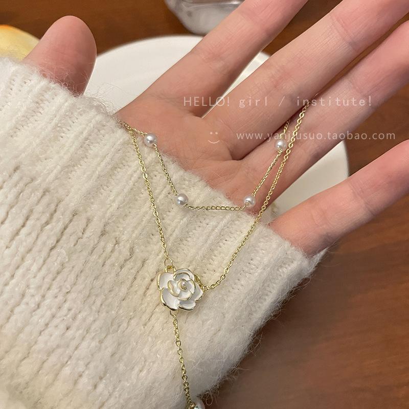 Collar de Camelia de Perlas con Borla de Doble Capa para Mujer 2025 Nueva Llegada Cadena para Clavícula Accesorios de Collar de Alta Gama de Lujo Ligero