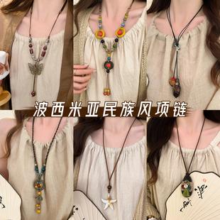 Collar de Estilo Étnico Retro Bohemio para Mujer 2025 Nuevo Estilo Nuevo Retro Chino Collar Largo con Colgante Accesorios