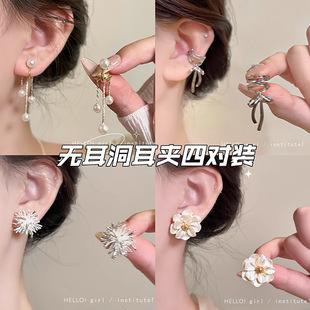 2025 Nuevo Borla de Flores Clip para Oreja de Bobina para Mosquitos Sin Perforación para Mujer Lujo Ligero Aretes de Gama Alta Clip para Cartílago de Oreja Indoloro