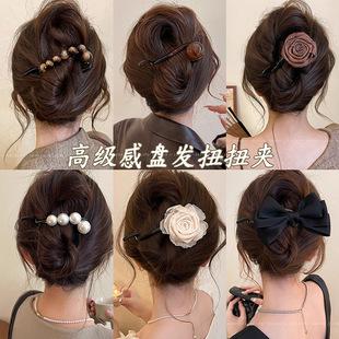 Pinza giratoria de flor rosa de alta gama para mujer 2025 nueva pinza de una palabra para la parte posterior de la cabeza pinza de garra horquilla versátil accesorio para el cabello
